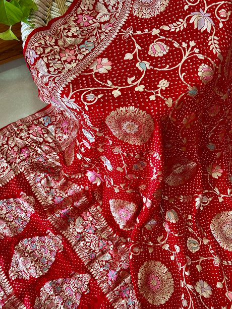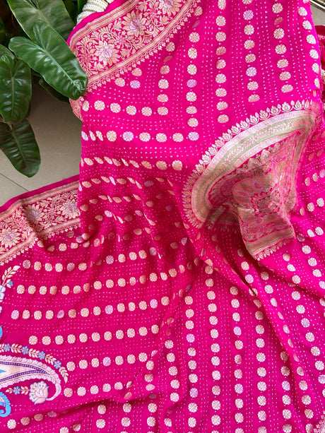 Gulabi Rangrez - Pure Banarasi Georgette Meenakari Bandhani Dupatta