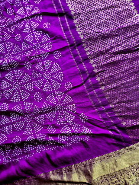₹ 17,000.00Unit price /UnavailableKanchLeher - Vibrant Purple Kanjivaram Silk Bandhani Dupatta