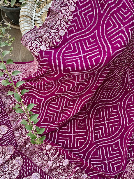 ₹ 22,000.00Unit price /UnavailableViolet Pure Georgette Meenakari Bandhani Dupatta