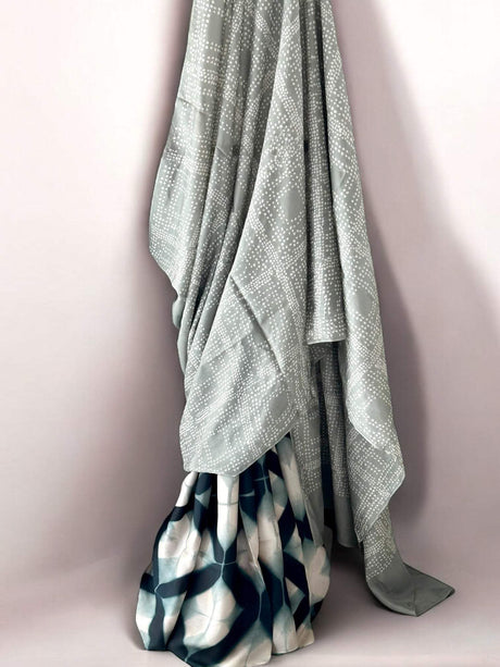 ₹ 20,500.00Unit price /UnavailableHabotai Silk Clamp Dye Bandhani Saree in Shades of Grey