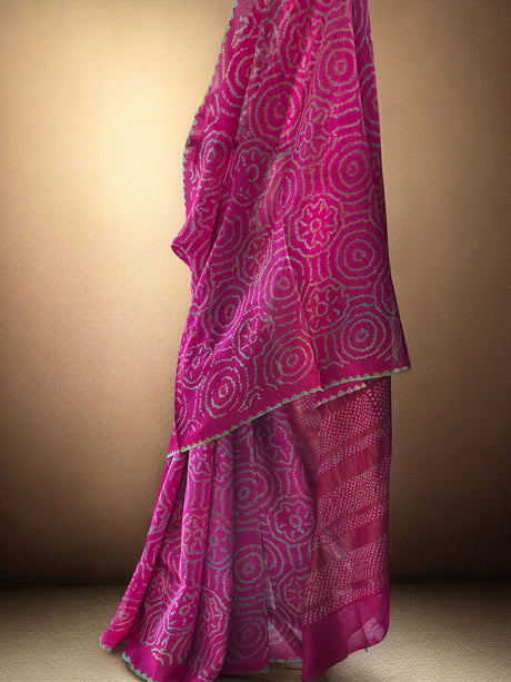 ₹ 13,500.00₹ 17,000.00Unit price /UnavailableVibrant Pink and Red Circular Theme Pure Gajji Silk Bandhani Saree