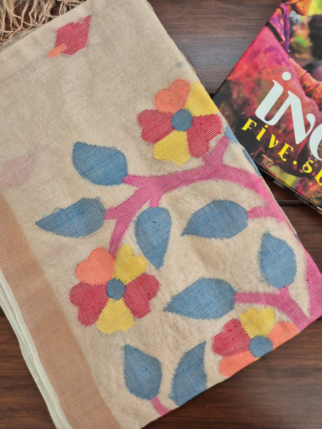 ₹ 4,000.00Unit price /UnavailableOff White Floral Cotton Saree made on Jacquard Loom