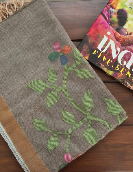 ₹ 3,500.00Unit price /UnavailableElegant Mulmul Cotton Saree made on Jacquard Loom in Green and Grey Colour