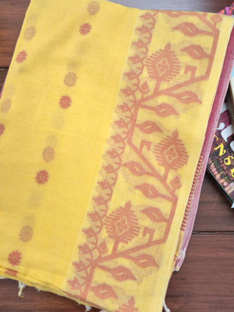 ₹ 3,500.00Unit price /UnavailableYellow Floral Cotton Saree made on Jacquard Loom