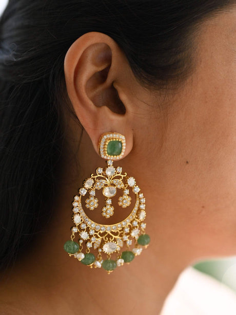 Noor Jahan 92.5 Silver Moissanite Polki Chandbalis