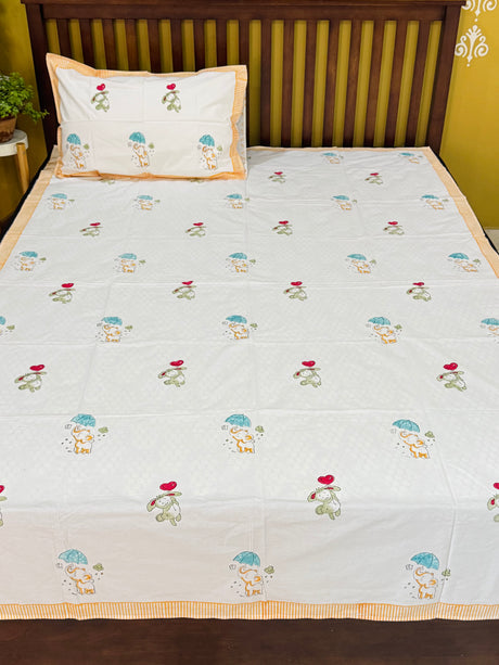 The kids bedsheets are of playful prints and soft fabric of the cotton bedsheet with pillow covers provide a marvelous combination of fun and functionality. These sheets are easy to maintain, making bedtime a cozy and lovely time for all children.