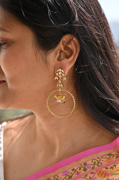 ₹ 24,375.00Unit price /UnavailablePichwai Theme 92.5 Silver Earrings with Moissanite Polki