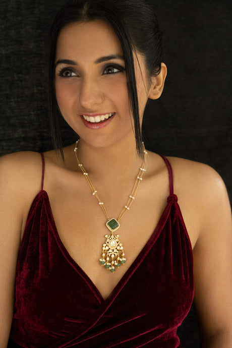 ₹ 12,500.00Unit price /Unavailable Graceful and Elegant 925 Silver Pendant Set with Mossianite Polki and Green Aventurine