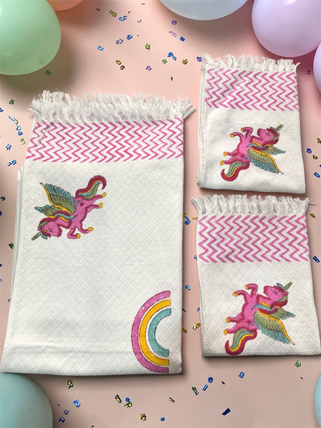 Cheerful Rainbow Unicorn Kids Cotton Jacquard Towel Set (1 Bath, 2 Hand)