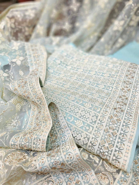₹ 9,000.00Unit price /UnavailableSimple Yet Elegant 3pc Unstitched Organza Suit Set in Light Blue Colour