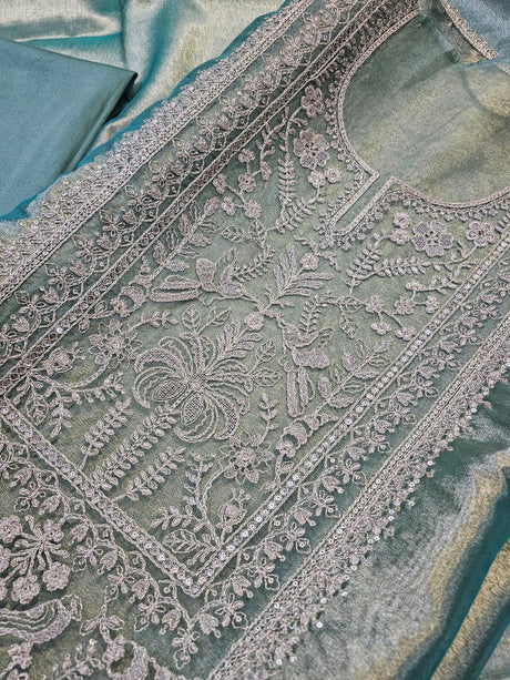 ₹ 10,000.00Unit price /UnavailableFestive Tissue Embroidered Semi Stitched Suit Set - Green
