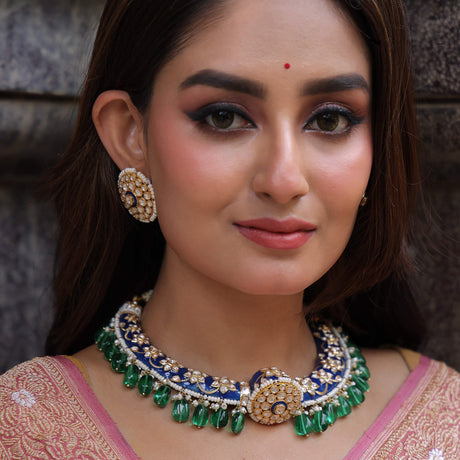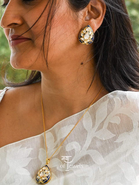 ₹ 15,075.00Unit price /UnavailableHandcrafted Blue Meenakari Pendant and Earrings Set with Moissanite Polki