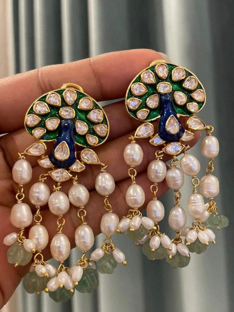 ₹ 19,430.00Unit price /UnavailablePeacock Theme Green & Blue Handcrafted 92.5 Silver Meenakari Earrings