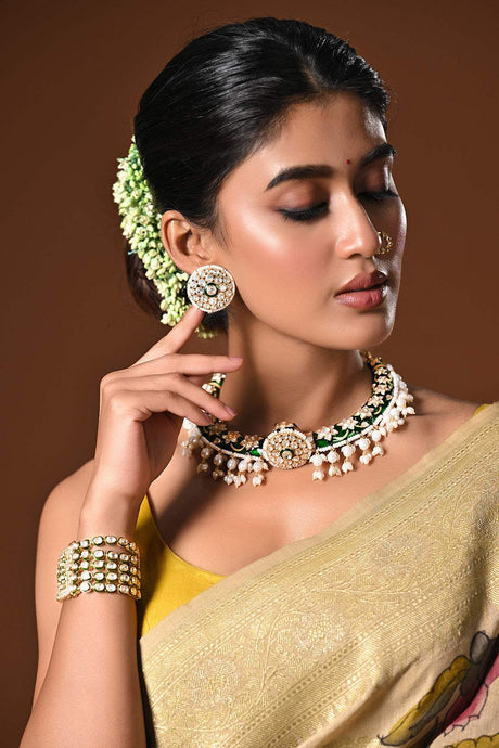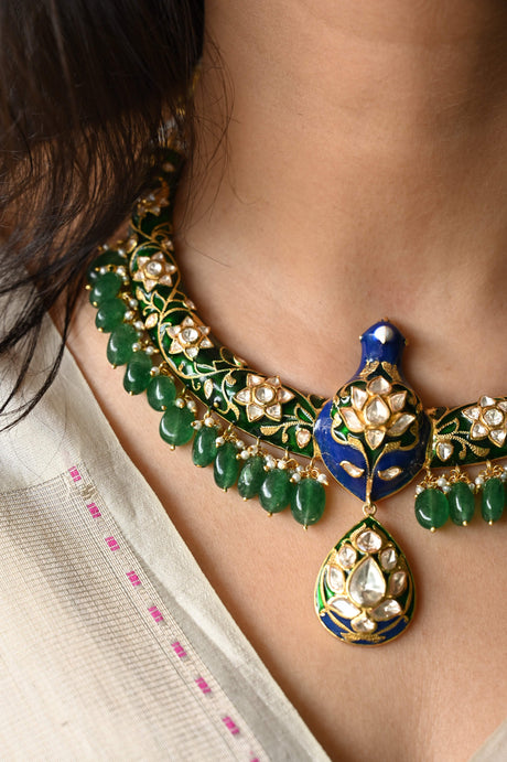 ₹ 76,883.00Unit price /UnavailableHandcrafted 92.5 Silver Green Meenakari Hasli with Earrings