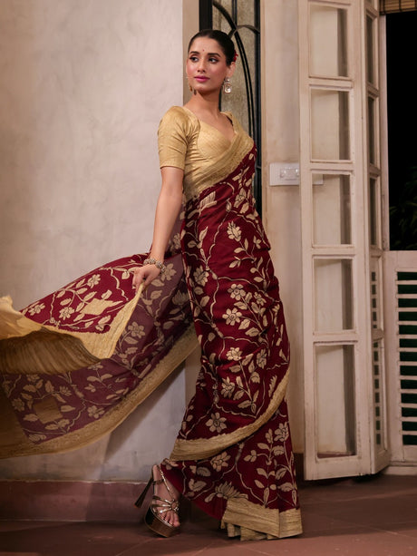 ₹ 32,000.00Unit price /UnavailableMaroon Mughlai Floral Pure Banarsee Georgette Kalamkari Saree