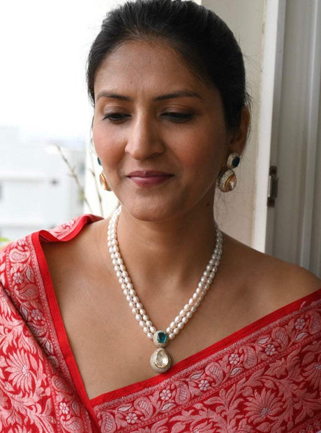 ₹ 16,000.00Unit price /UnavailableNoor-e-Moti - Light of Pearls and Polki Sparkle Necklace Set