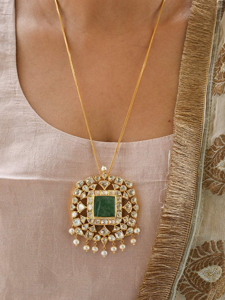 ₹ 15,946.00Unit price /UnavailableGraceful and Elegant 925 Silver Pendant Set with Mossianite Polki and Green Aventurine