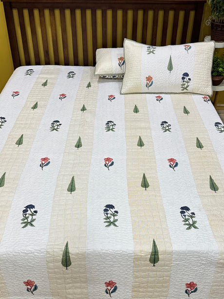 Double Size Quilted Blockprint REVERSIBLE Mulmul Bedcover (90*108 inches)