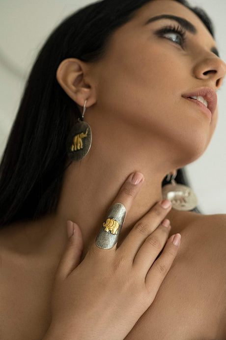 ₹ 6,000.00Unit price /UnavailableElephant Theme Two Tone 92.5 Silver Ring