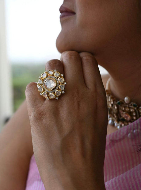 ₹ 11,000.00Unit price /UnavailableRegal Dream Handcrafted Adjustable 92.5 Silver Ring with Moissanite polki