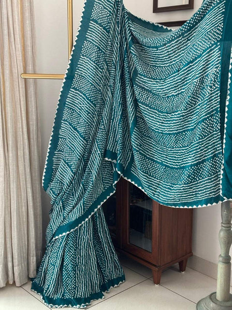 ₹ 40,000.00₹ 50,000.00Unit price /UnavailableGreenish Blue Pure Gajji Silk Bandhani Saree