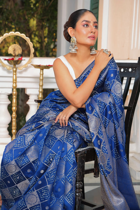 ₹ 29,750.00₹ 35,000.00Unit price /UnavailableBlue Dupion Banarsi Silk Bandhani Saree