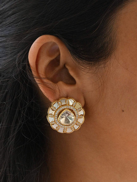 ₹ 14,740.00Unit price /UnavailableFloral Handcrafted 92.5 Silver Earring with Moissanite Polki