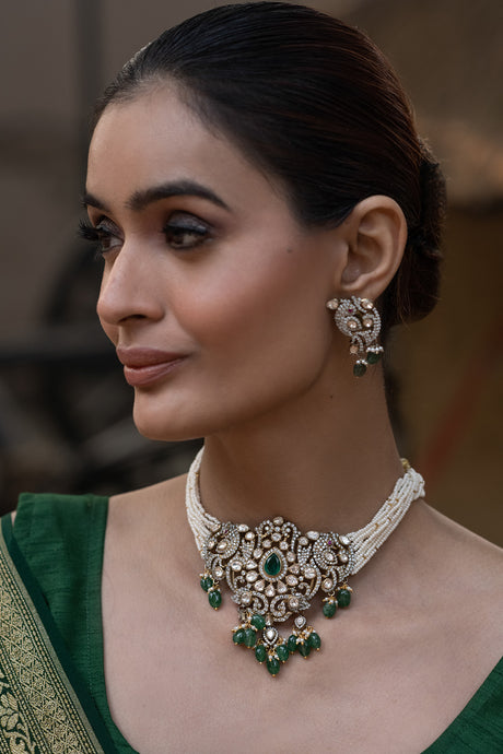 Aabhushan Royale - Moissanite Polki Cocktail Necklace and Earrings