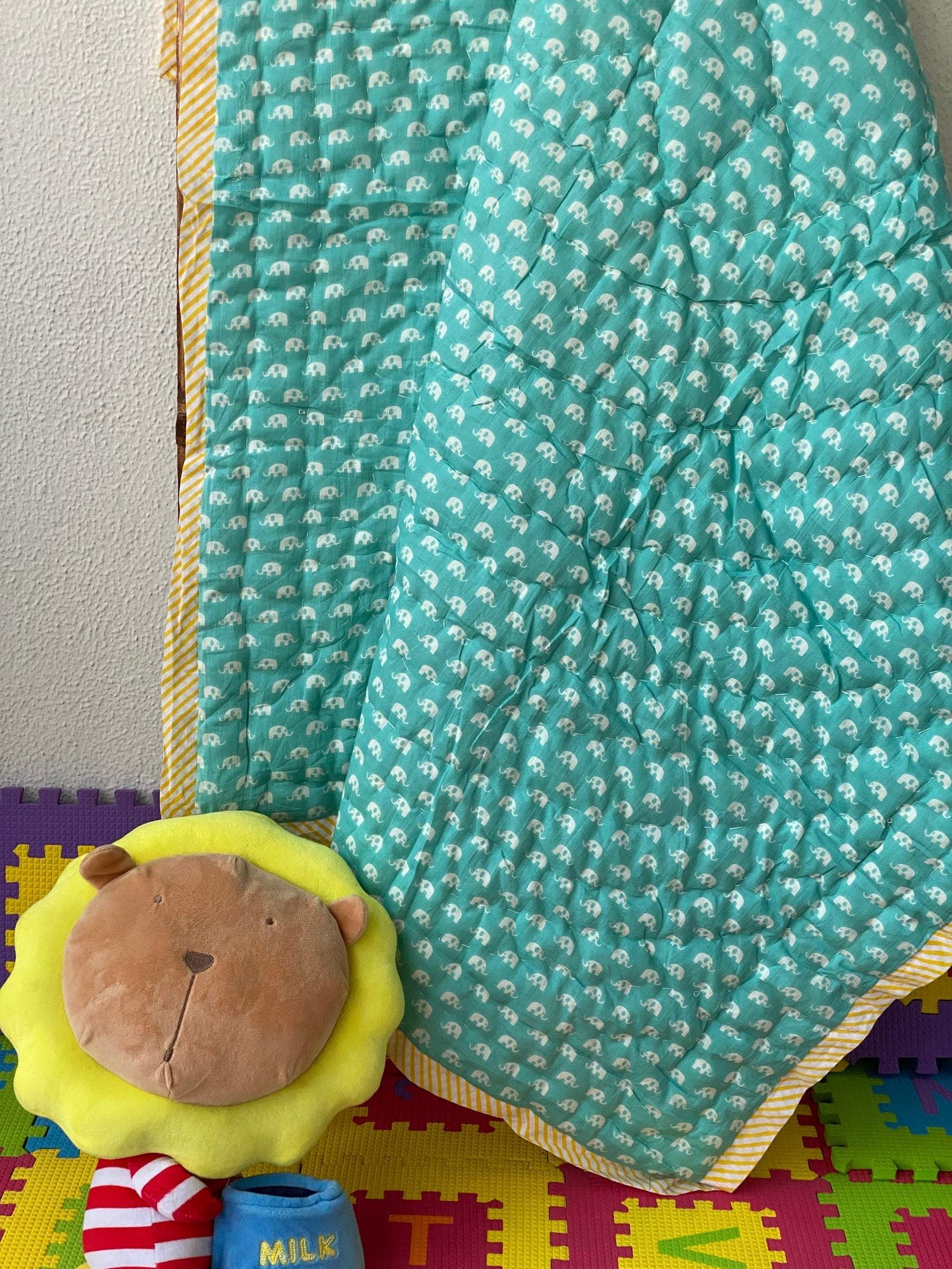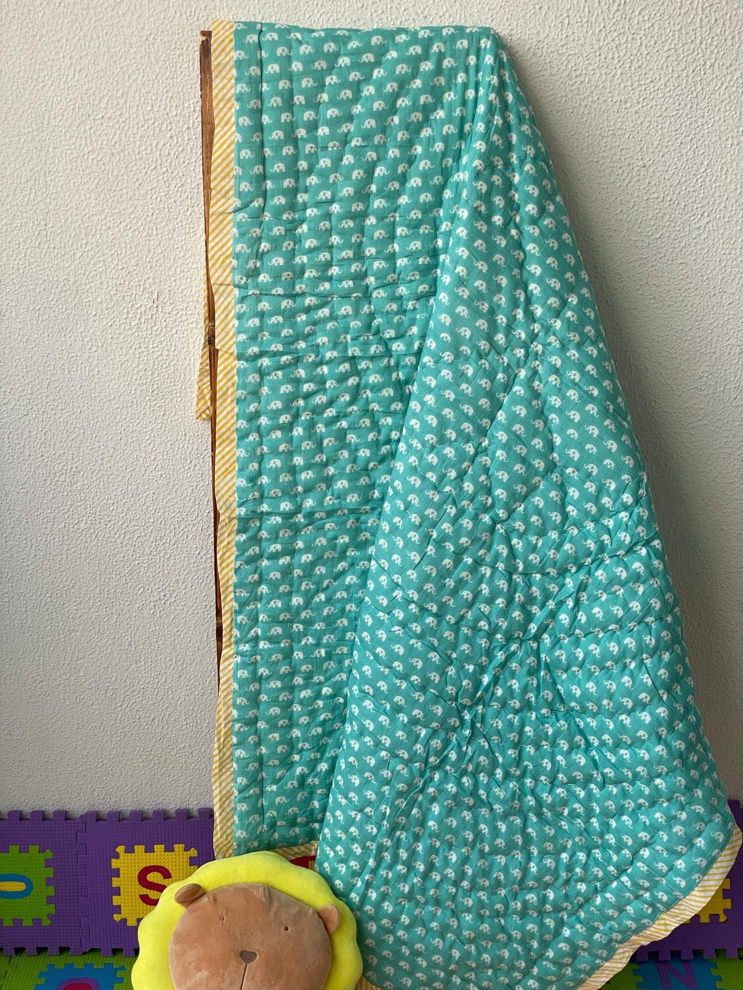 Reversible Hand Block Printed Cotton kids quilt made by the artisans of Rajasthan using azo-free dye.
