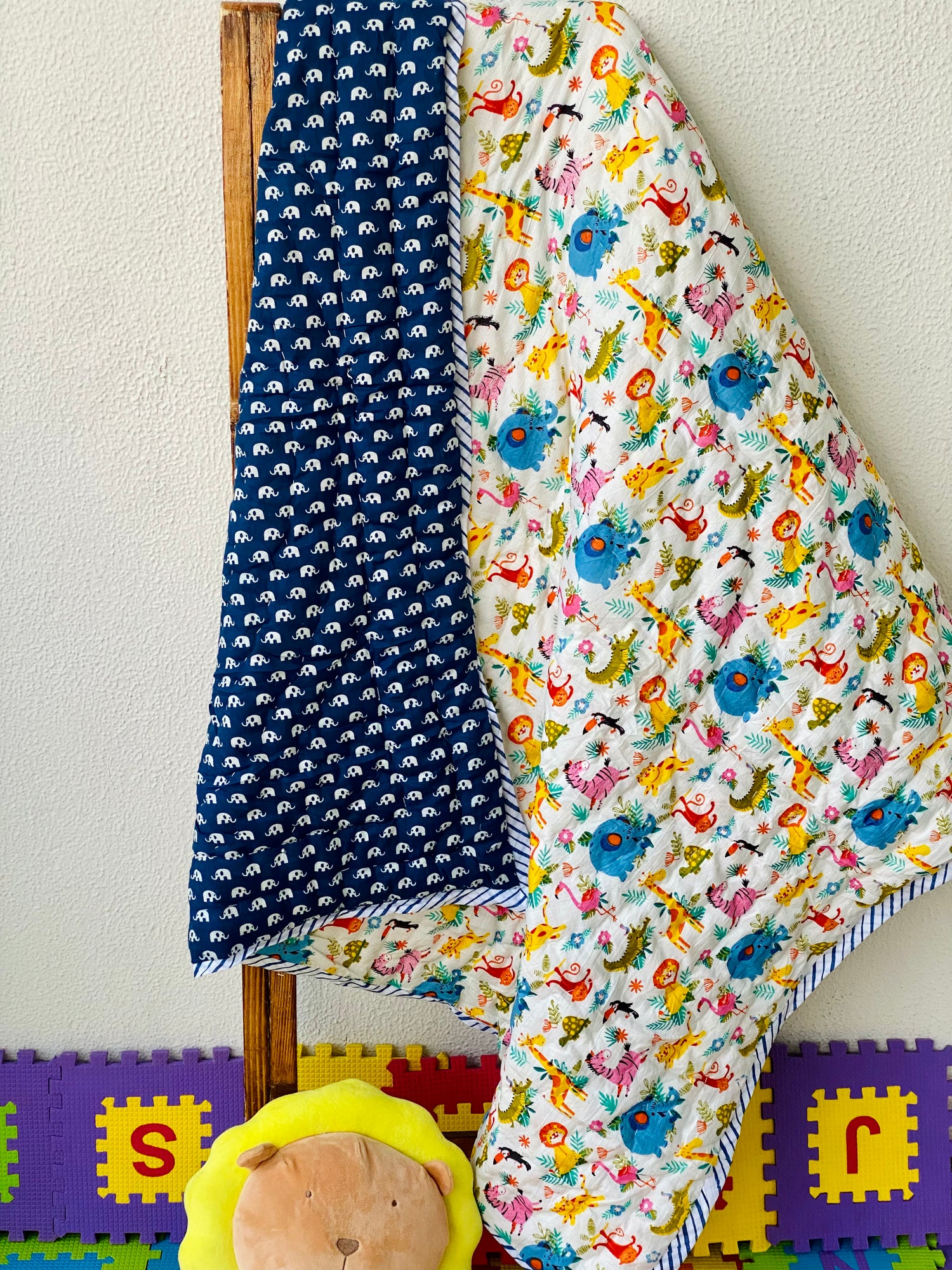 Animals Kids Quilt - PREORDER Baby Size (40*40 inches) 0-2 yrs is backordered and will ship as soon as it is back in stock.
