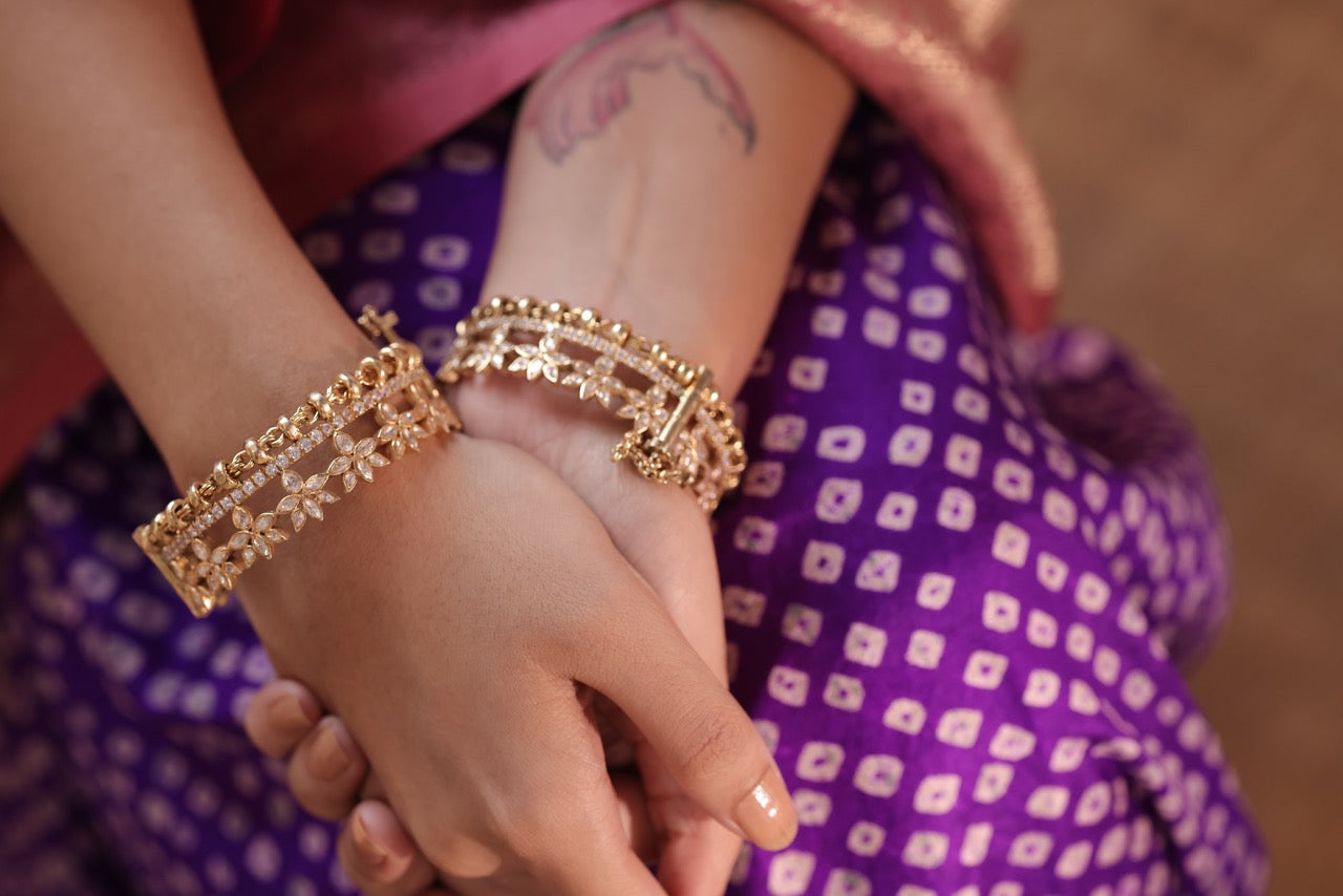 Arzoo Sparkling Floral Handcrafted Pair of 92.5 Silver Kadas