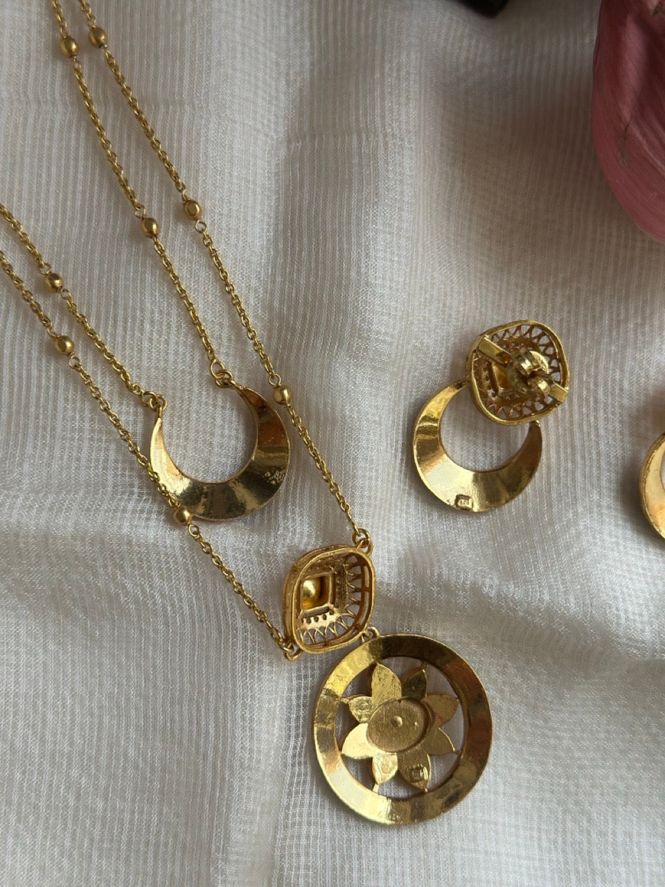 This exquisite jewellery set, crafted in 92.5 sterling silver, features a layered necklace and earrings with intricate Kundan kemp stones in deep royal blue. The design is accentuated by Moissanite Polki stones and ruby-toned detailing, symbolizing regal charm and artistic finesse. Perfect for festive or traditional occasions, it beautifully blends timeless elegance with a vibrant, contemporary touch.