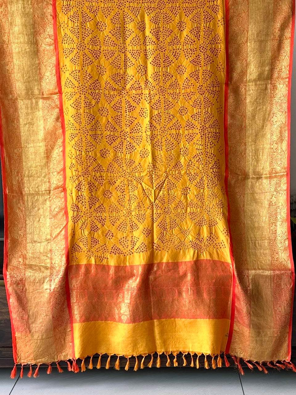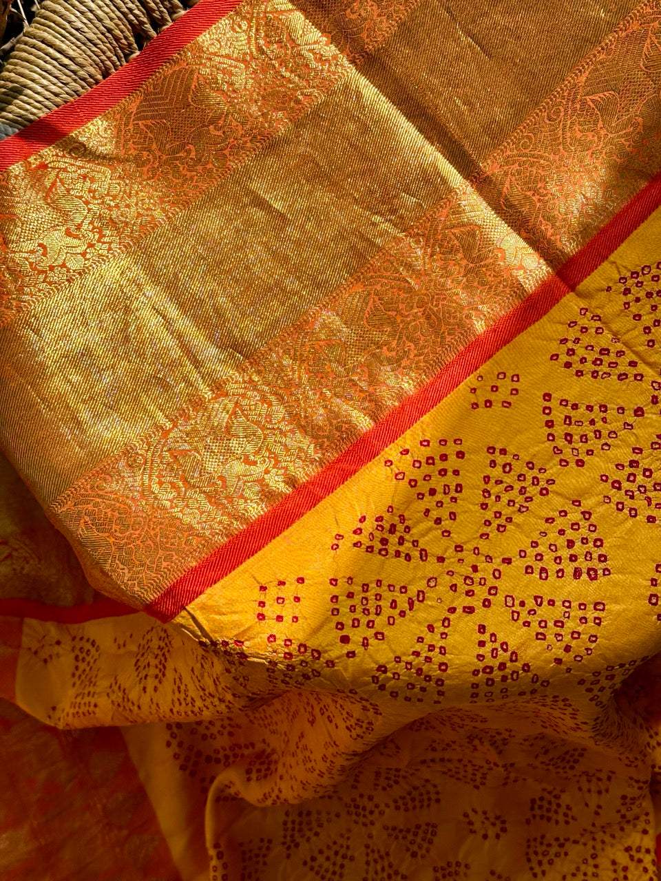 Bandhanika - Orange and Yellow Kanjivaram Silk Bandhani Dupatta
