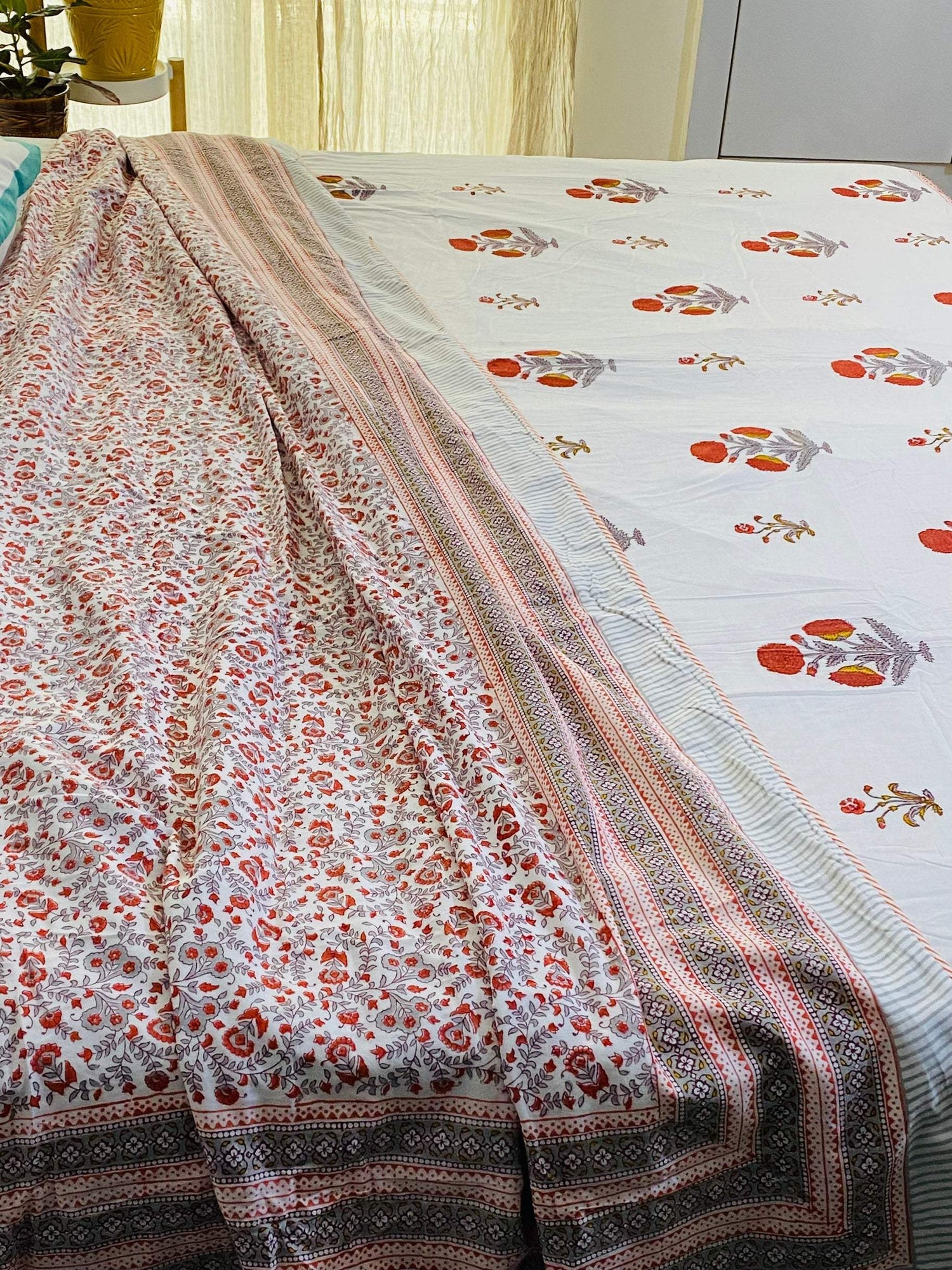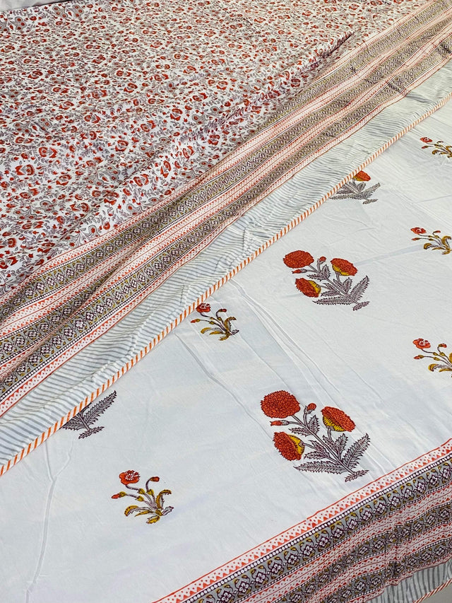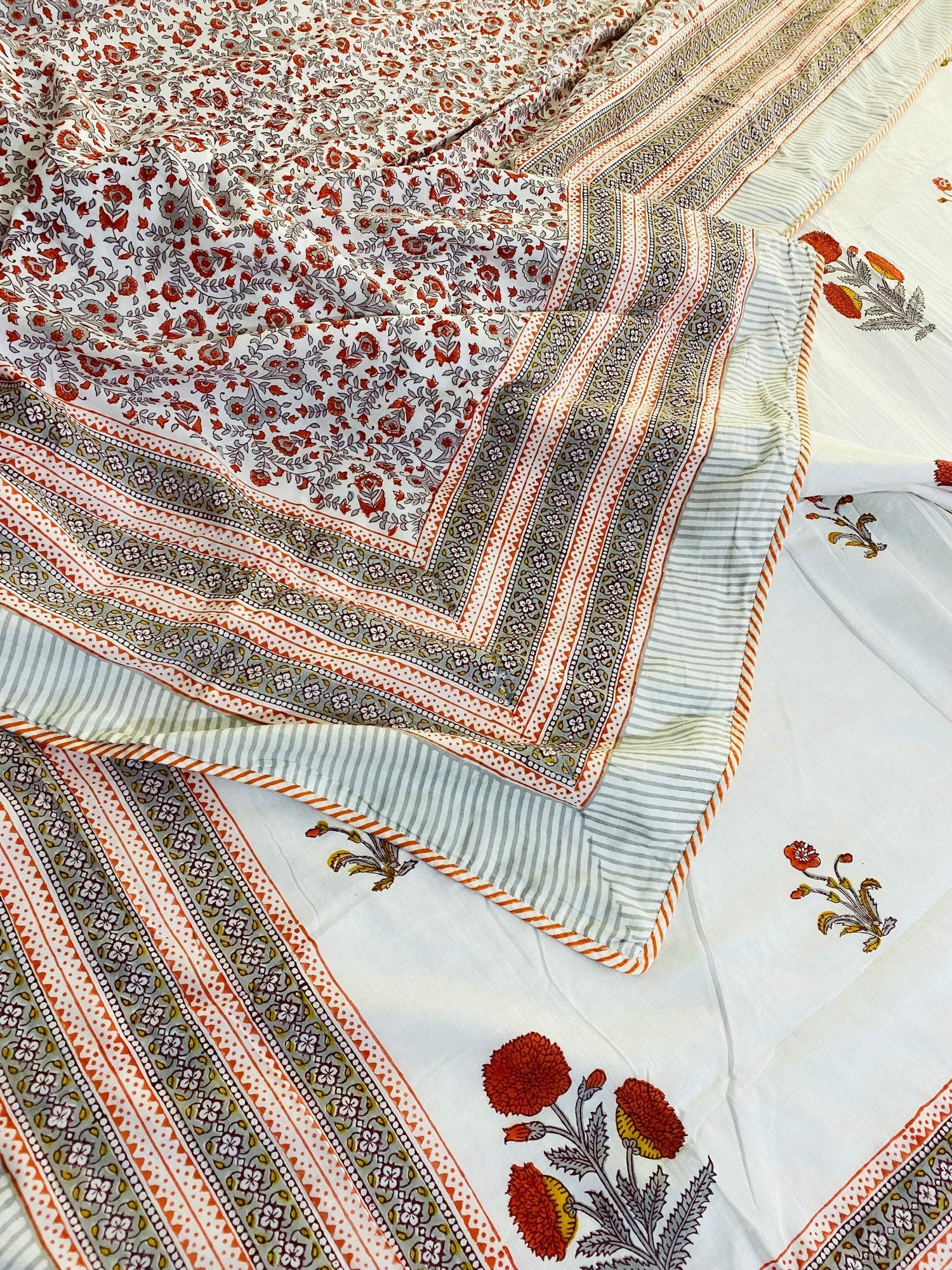 Reversible Hand Block Printed Soft Cotton Dohar layered with a warm layer of flannel. Crafted by the artisans of Rajasthan using azo-free dye.