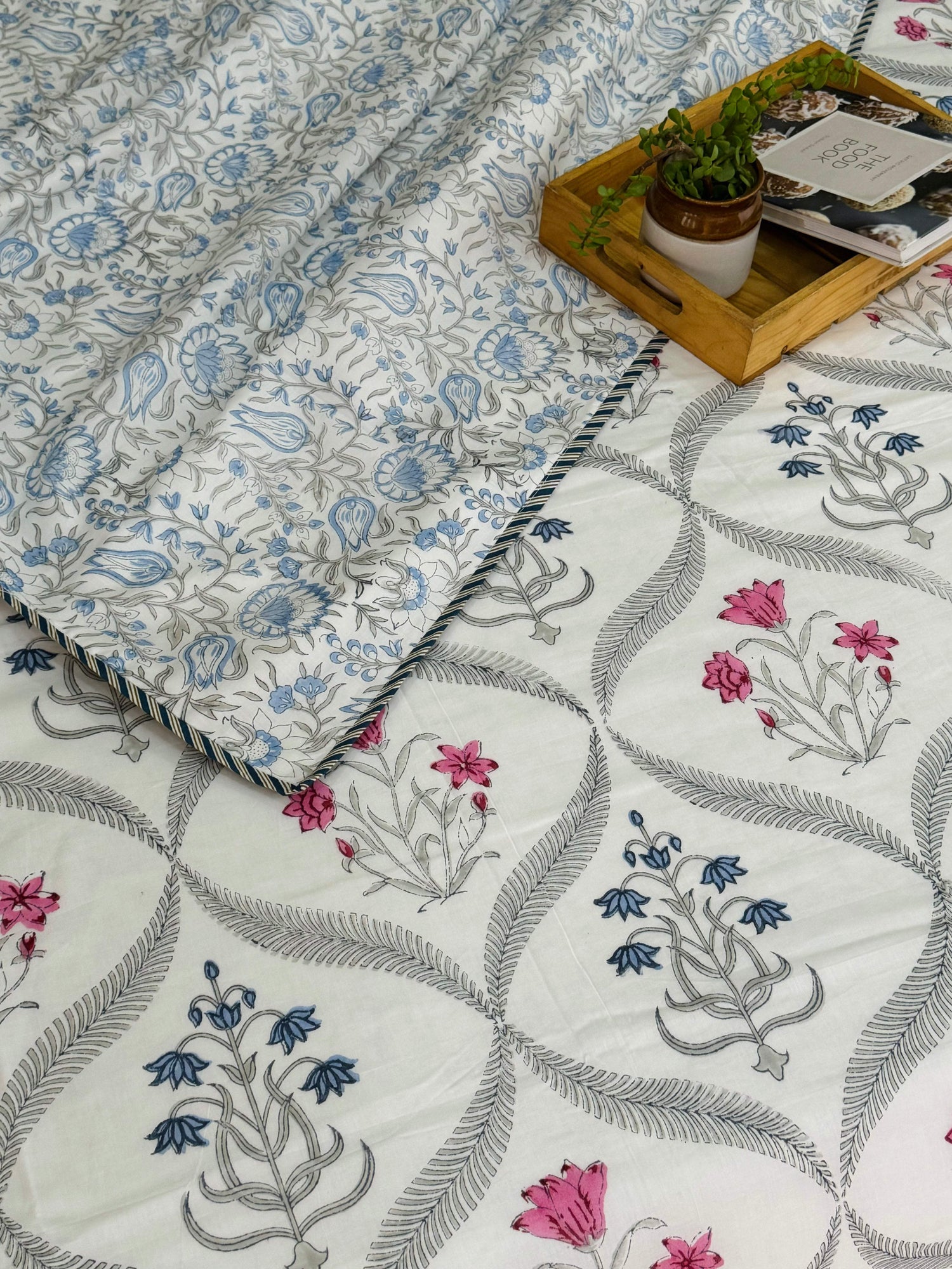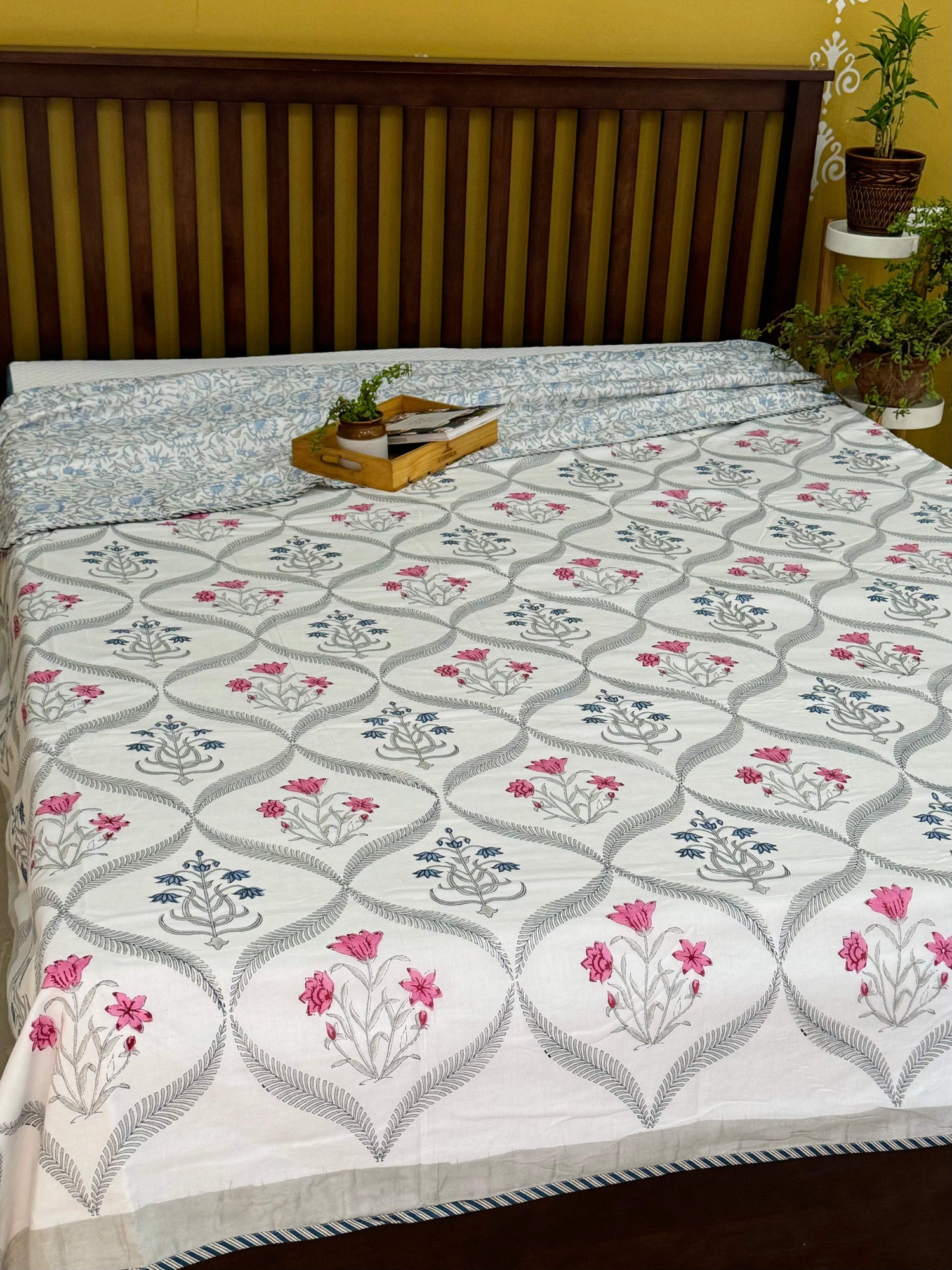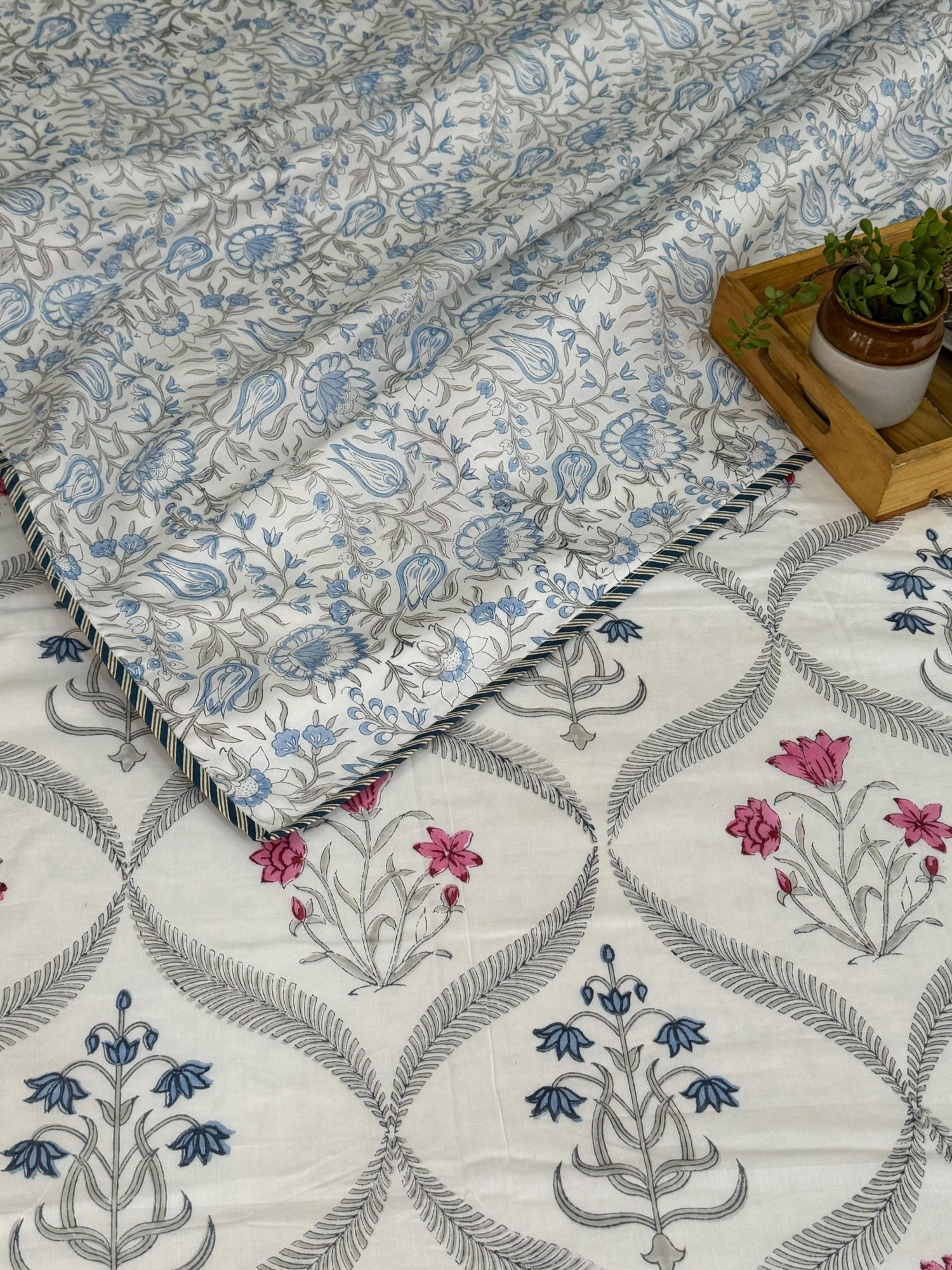 Reversible Hand Block Printed Soft Cotton Dohar layered with a warm layer of flannel. Crafted by the artisans of Rajasthan using azo-free dye.