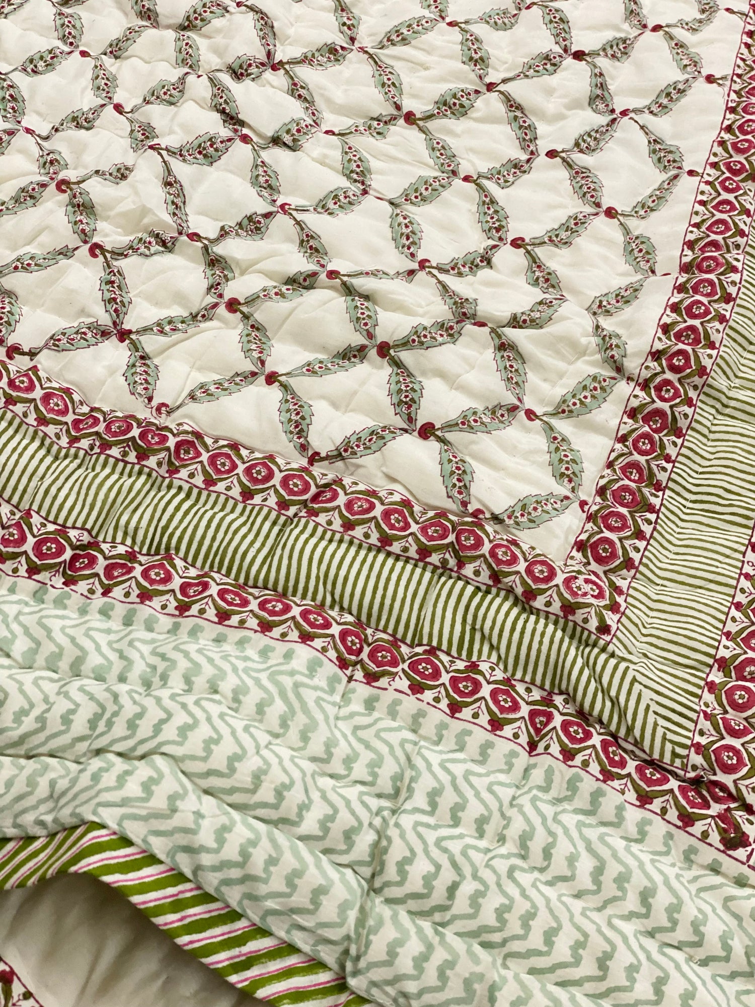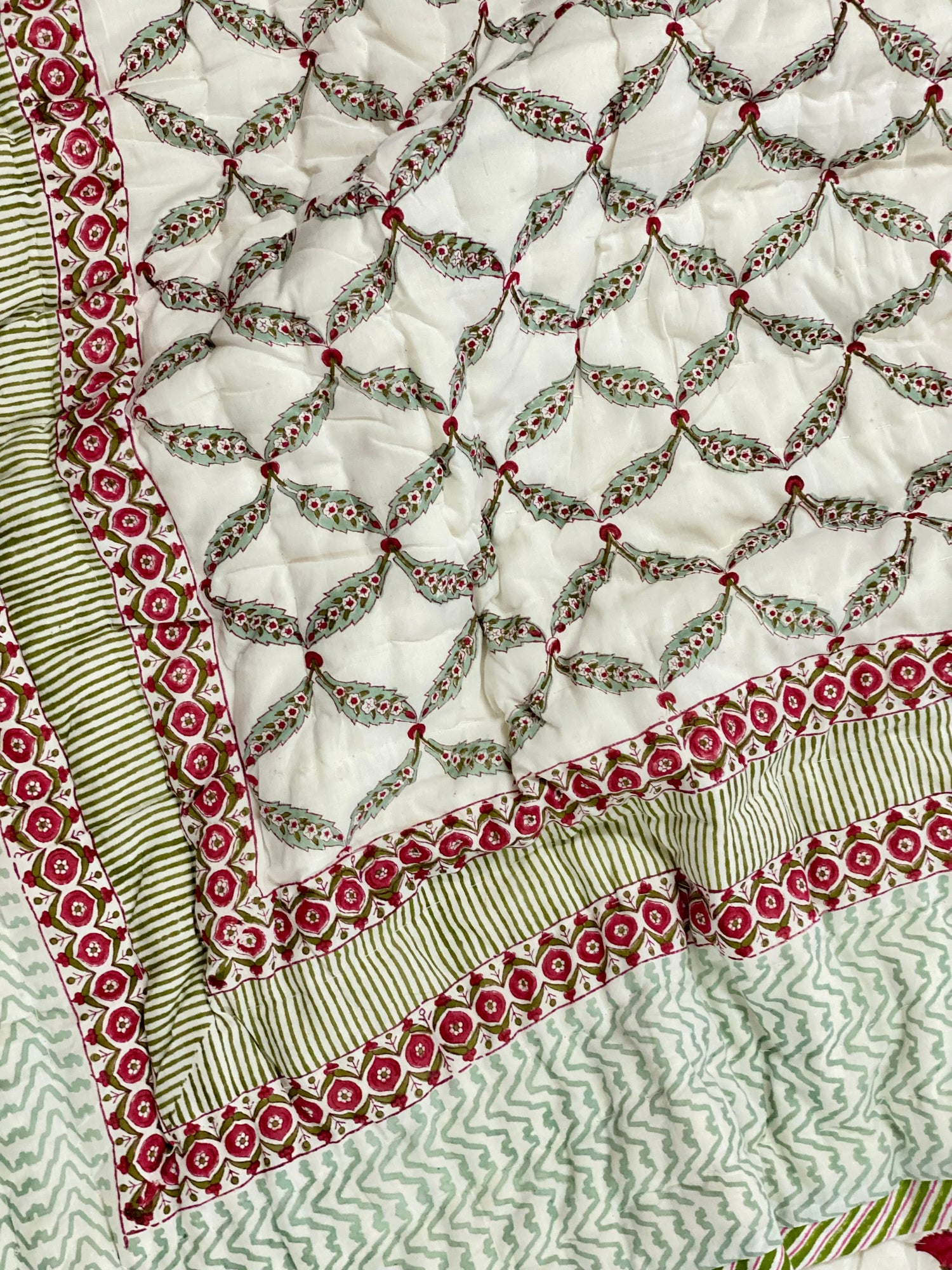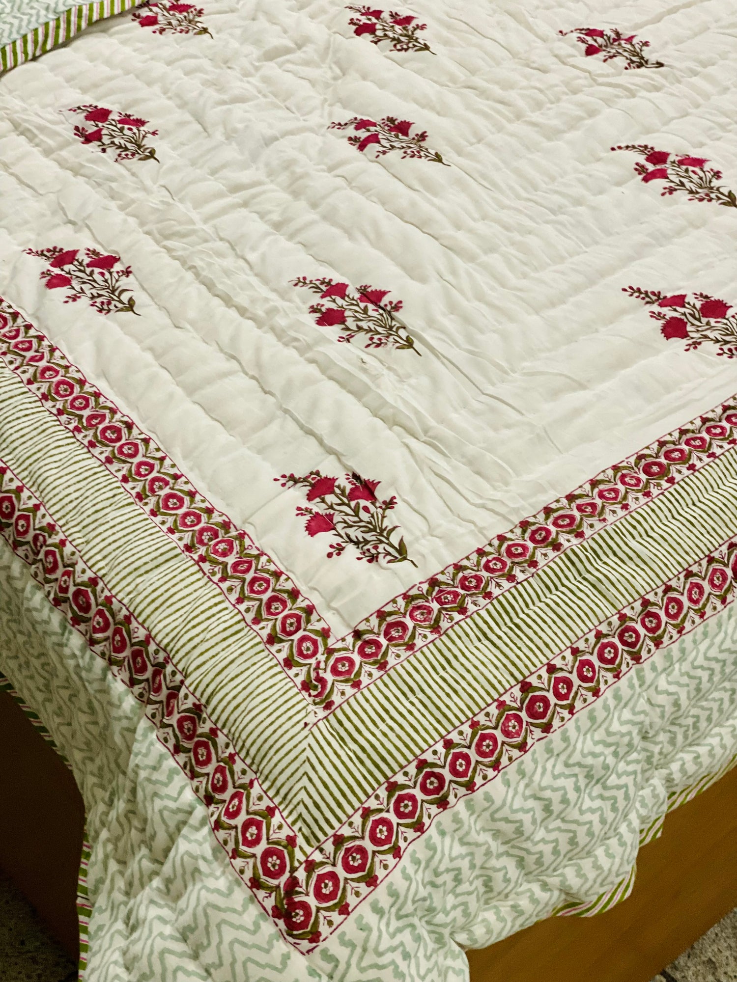 Hand Block Printed Cotton Reversible quilt/comforter. The quilt is made by the artisans of Rajasthan using azo-free dyes.