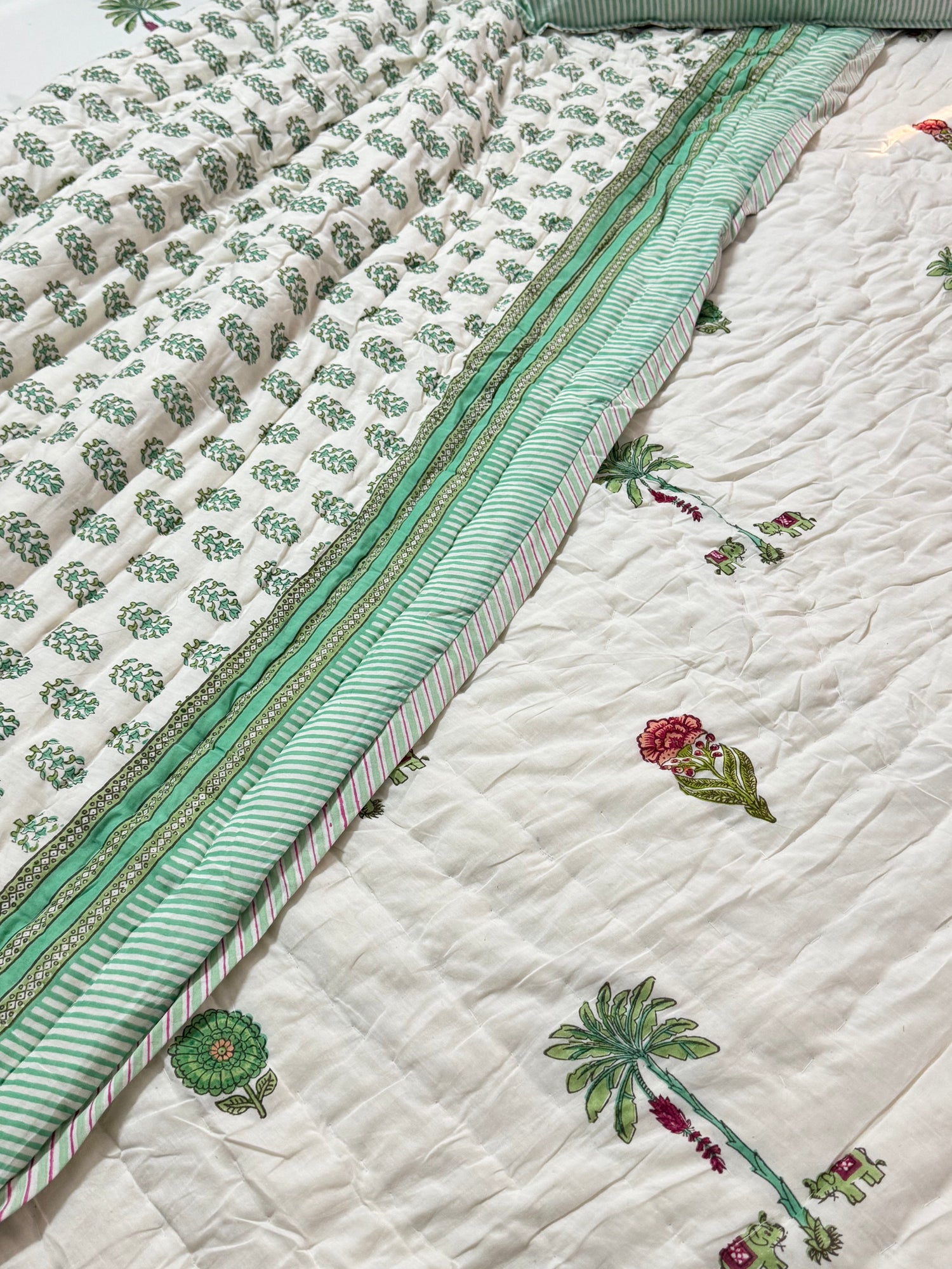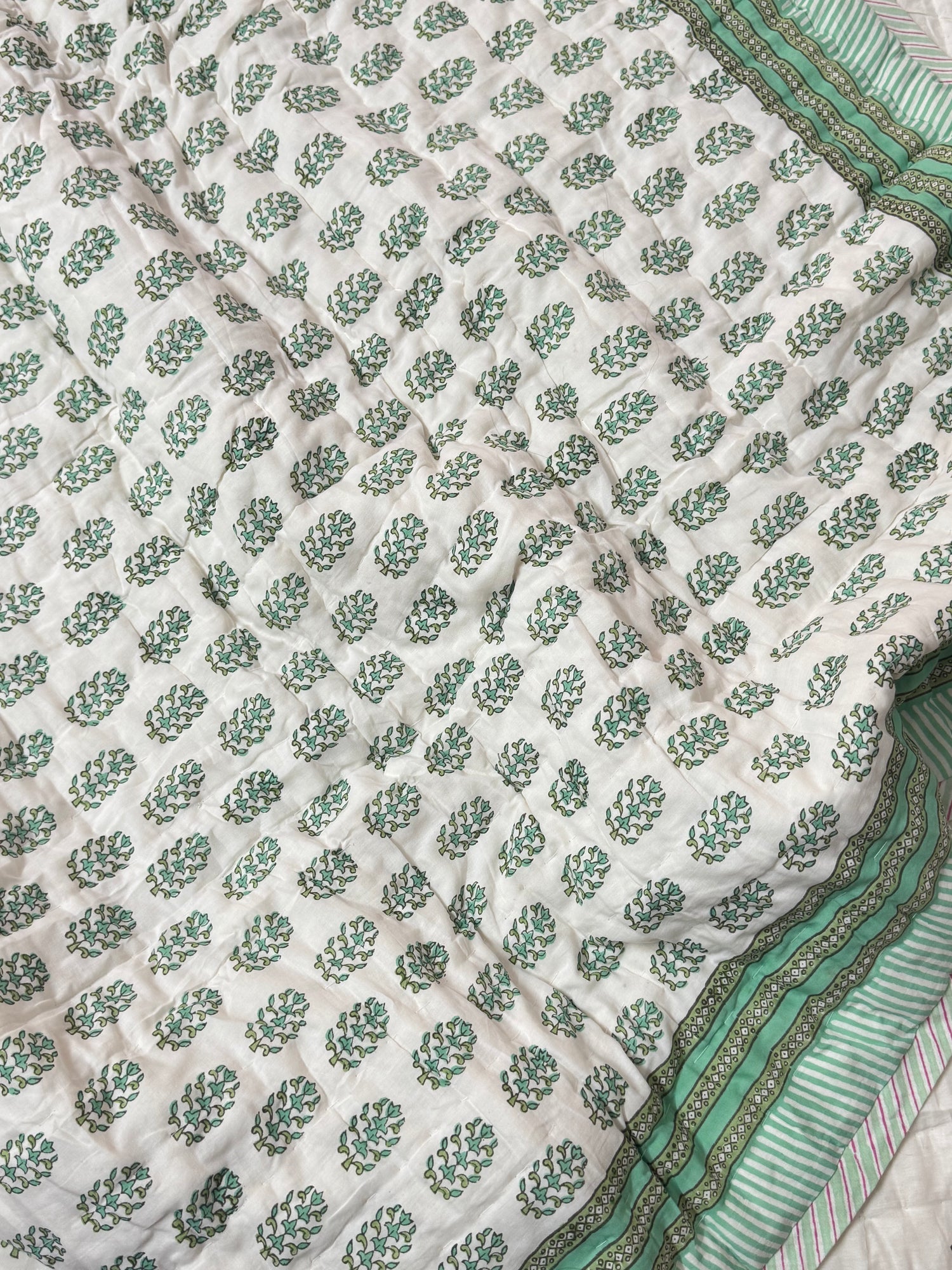 Hand Block Printed Cotton Reversible quilt/comforter. The quilt is made by the artisans of Rajasthan using azo-free dyes.