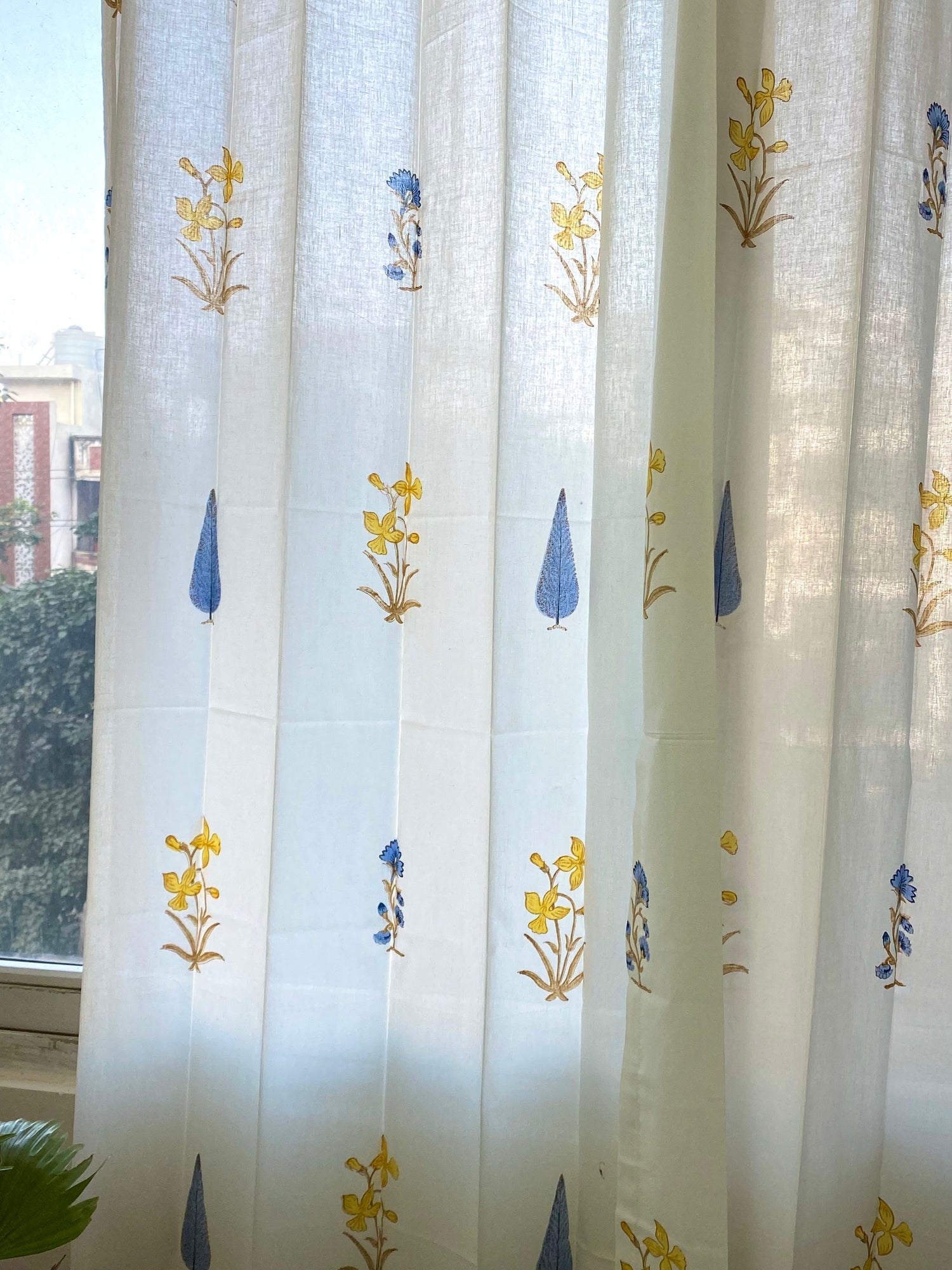 Blockprint Sheer Cotton Curtain - MADE ON ORDER 5ft long is backordered and will ship as soon as it is back in stock.
