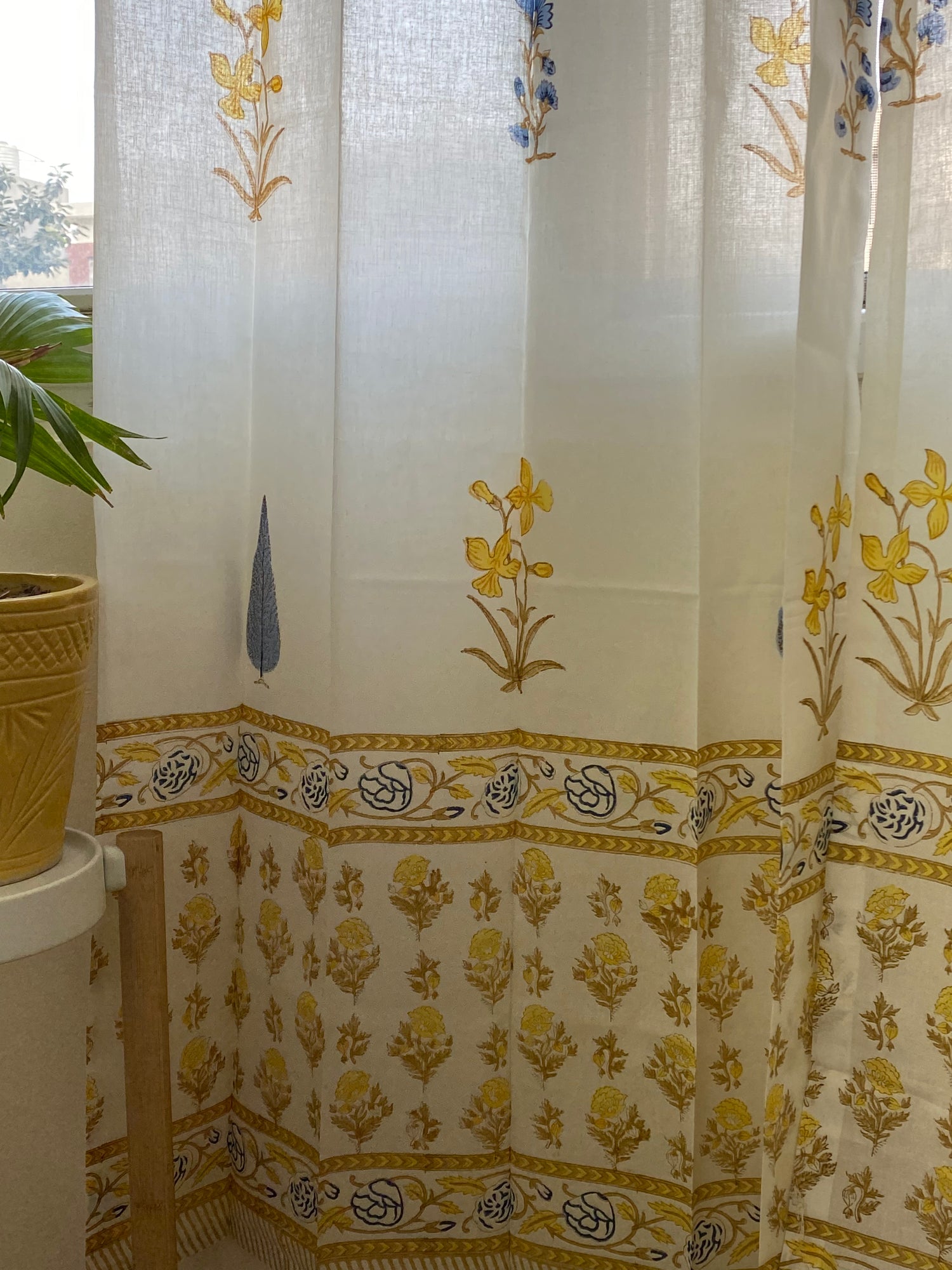 Hand Block Printed Cotton curtain. The curtain is made by the artisans of Rajasthan using azo-free dyes.