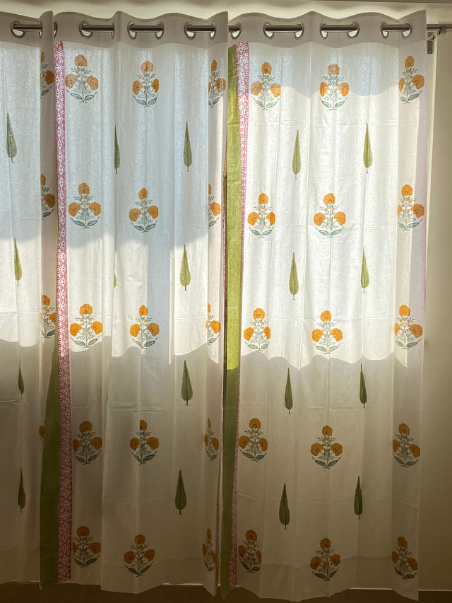 Hand Block Printed Cotton curtain. The curtain is made by the artisans of Rajasthan using azo-free dyes.