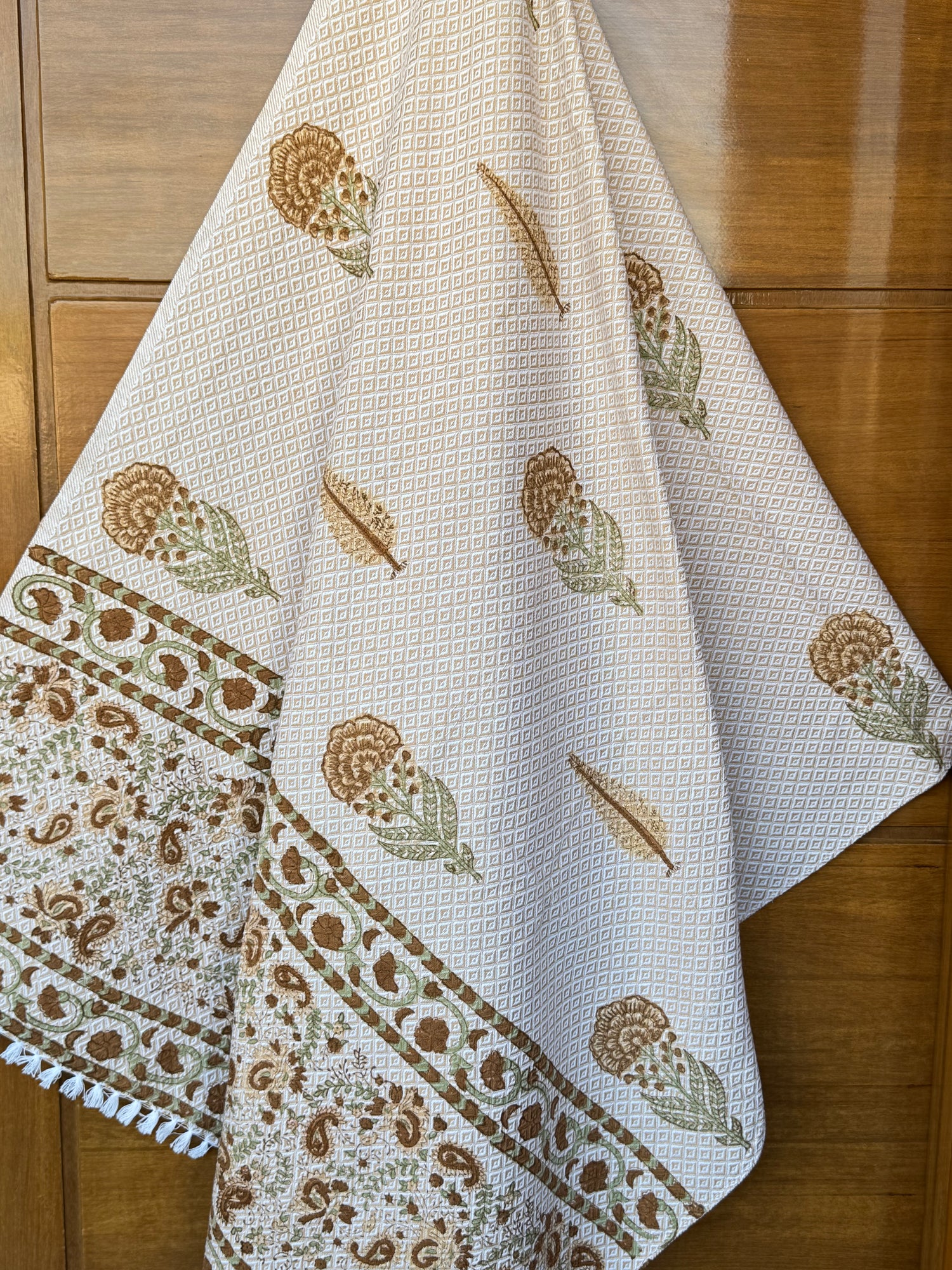 Brown Motifs Blockprint Soft Cotton Towel– Cotton Jacquard Weave