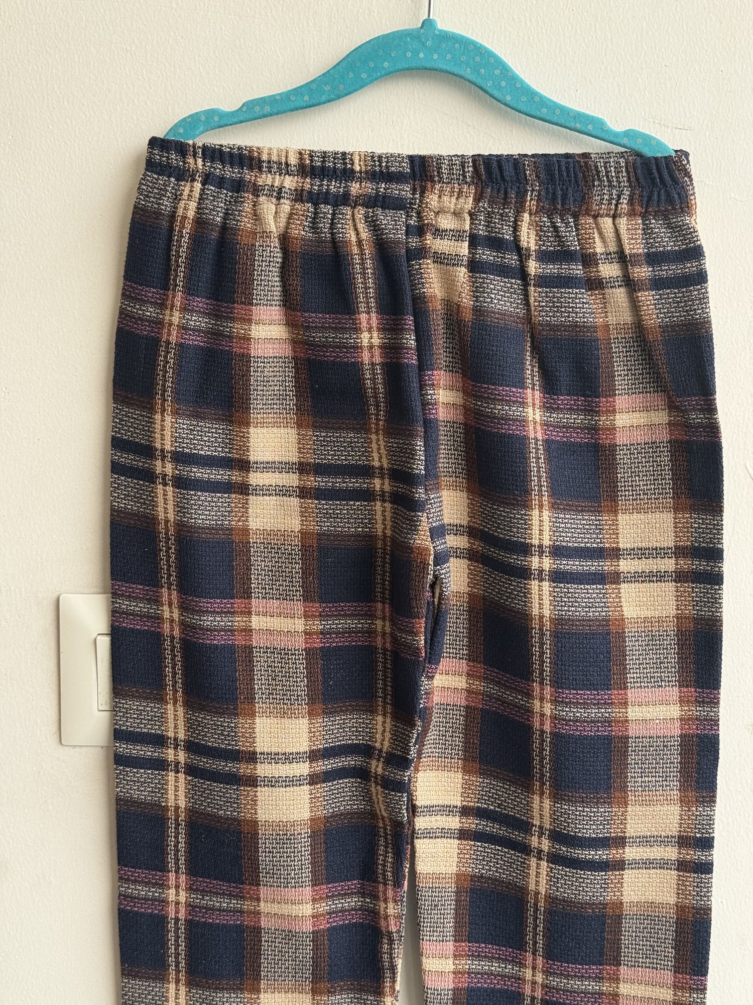 Cozy Navy Blue Beige Checked Kids Winter Night Suit Set