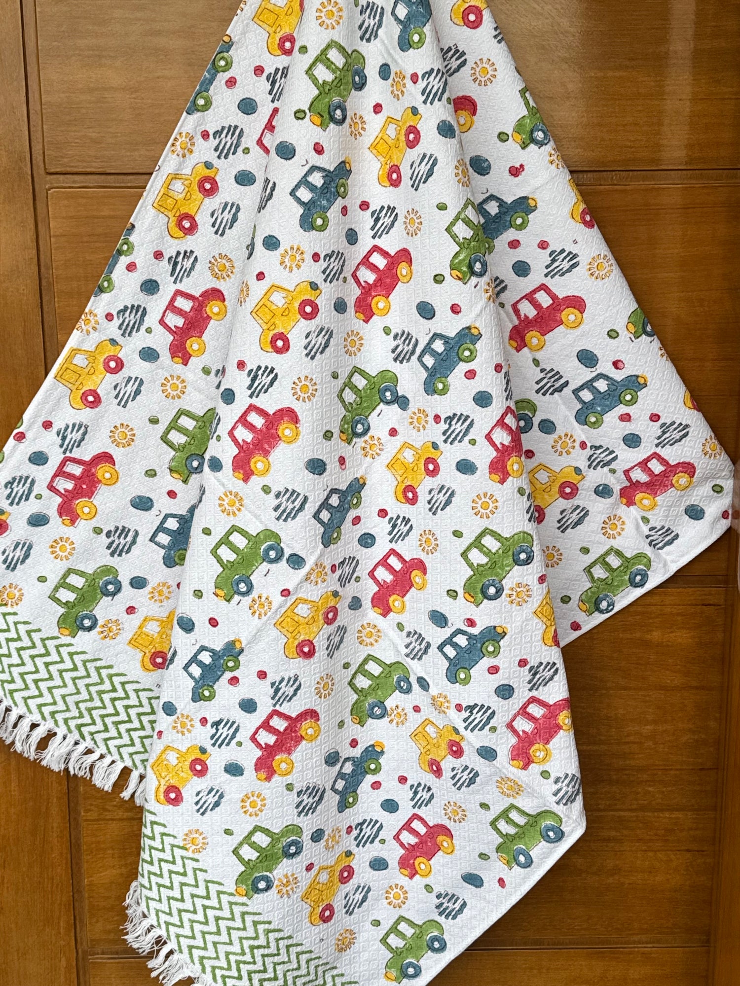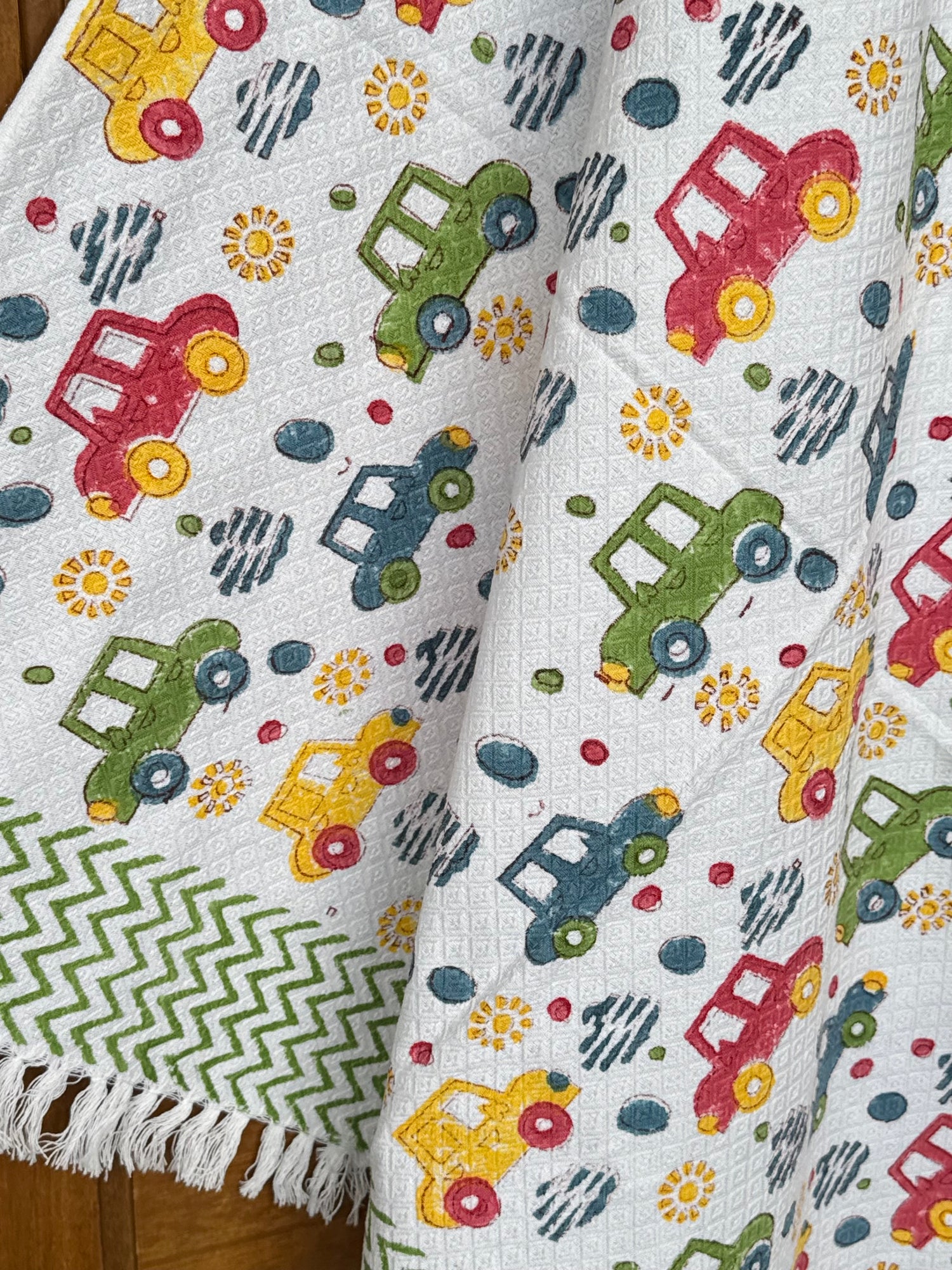 Lightweight Cotton Cars & Vehicles Towel – Jaipur Artisans, Newborn Gift