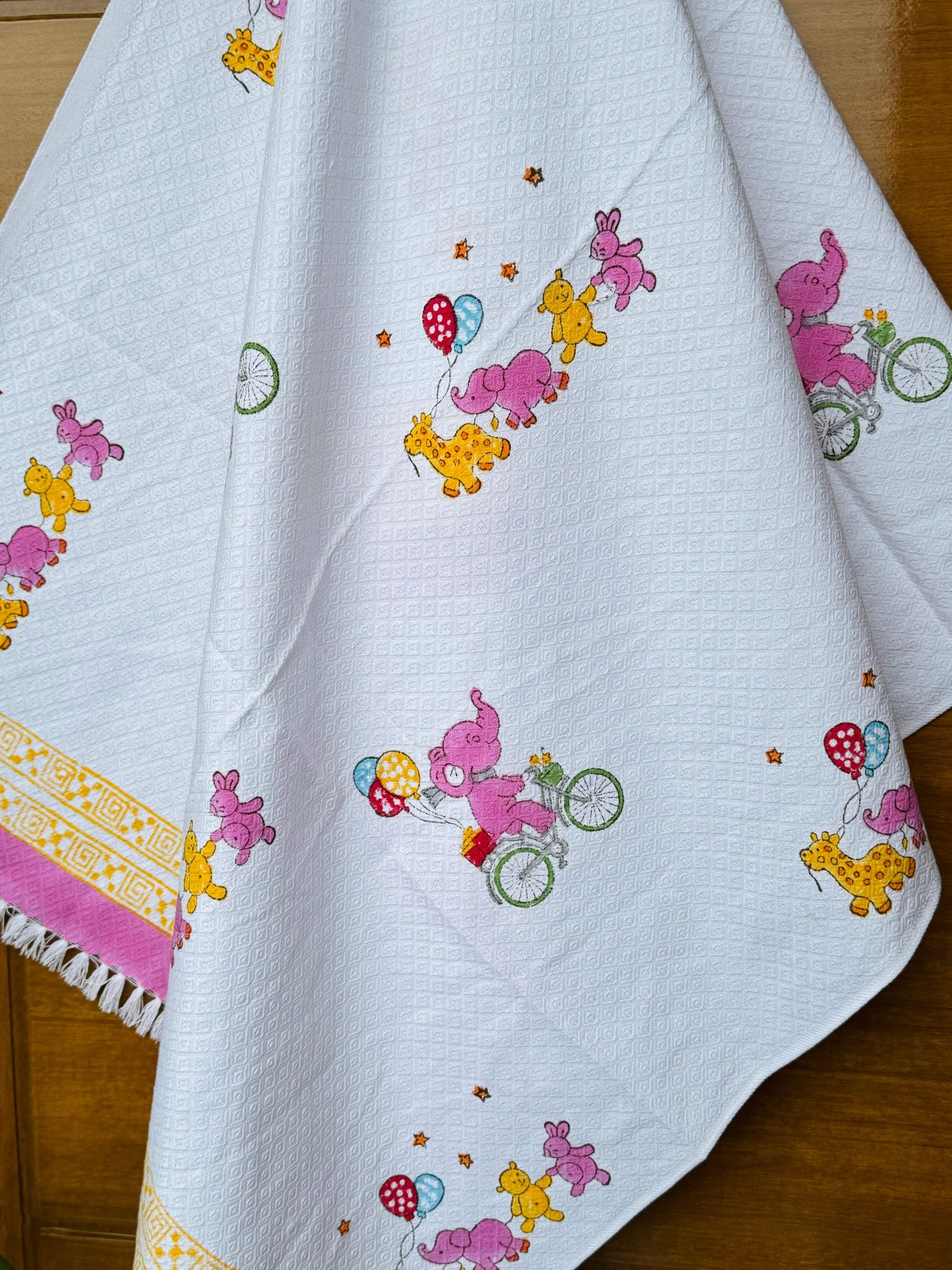 Cute Elephants Blockprint Kids Towel – Cotton Jacquard Weave