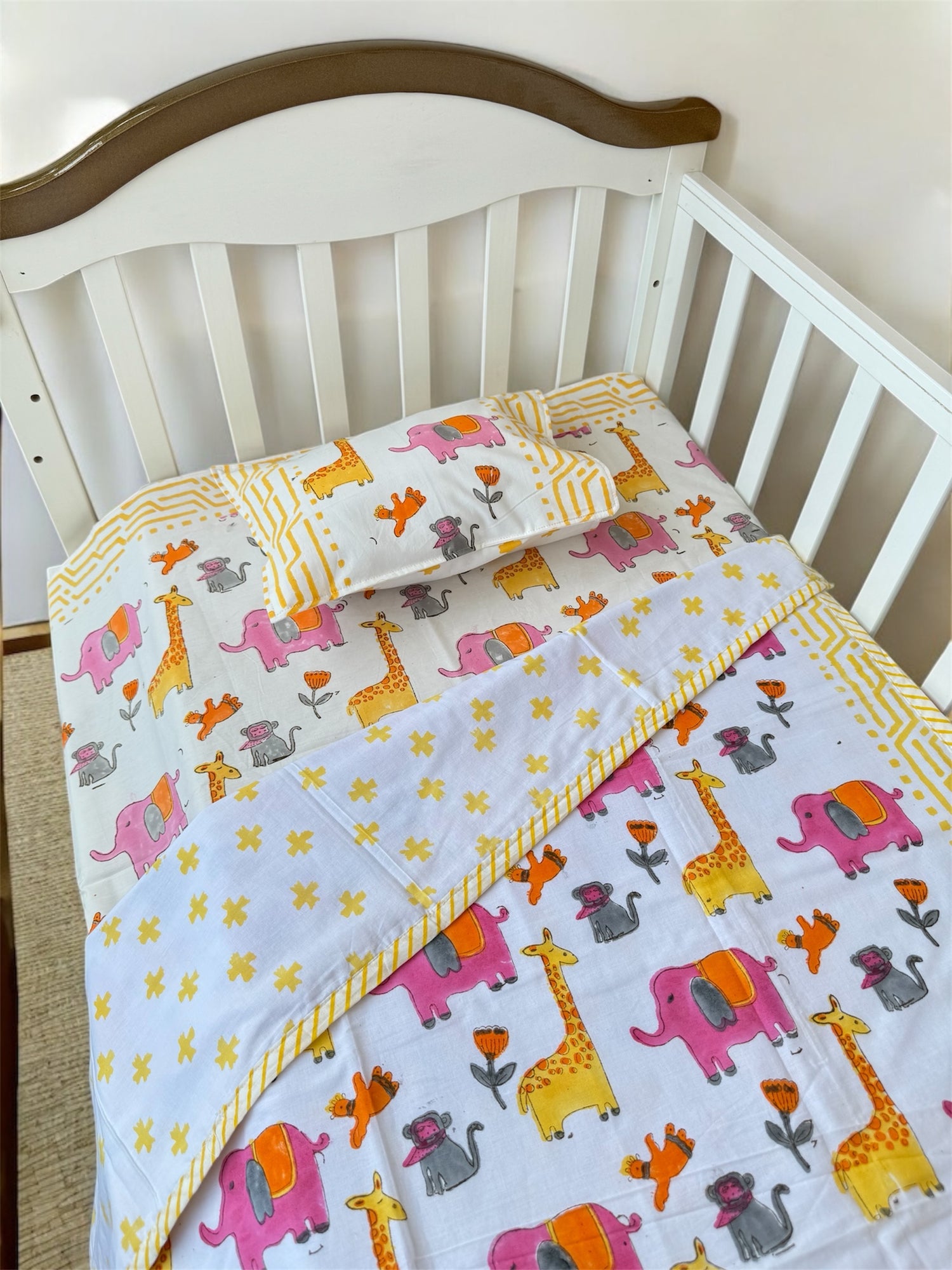Cute Giraffe Elephant- Baby Cot Bedding (cot sheet, dohar, pillowcase)