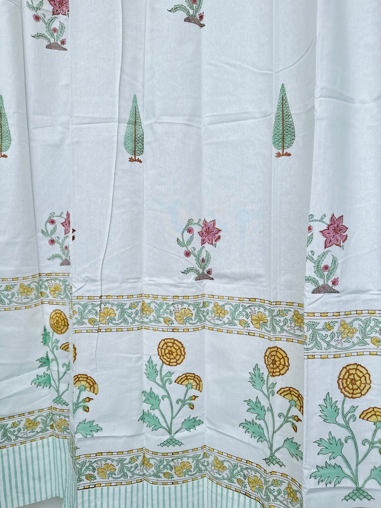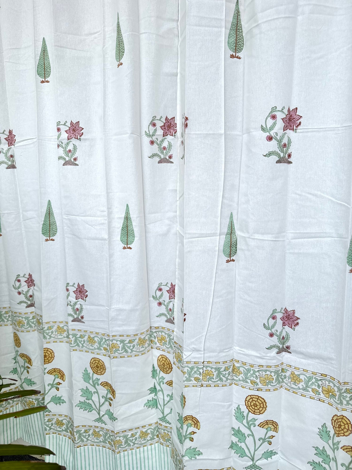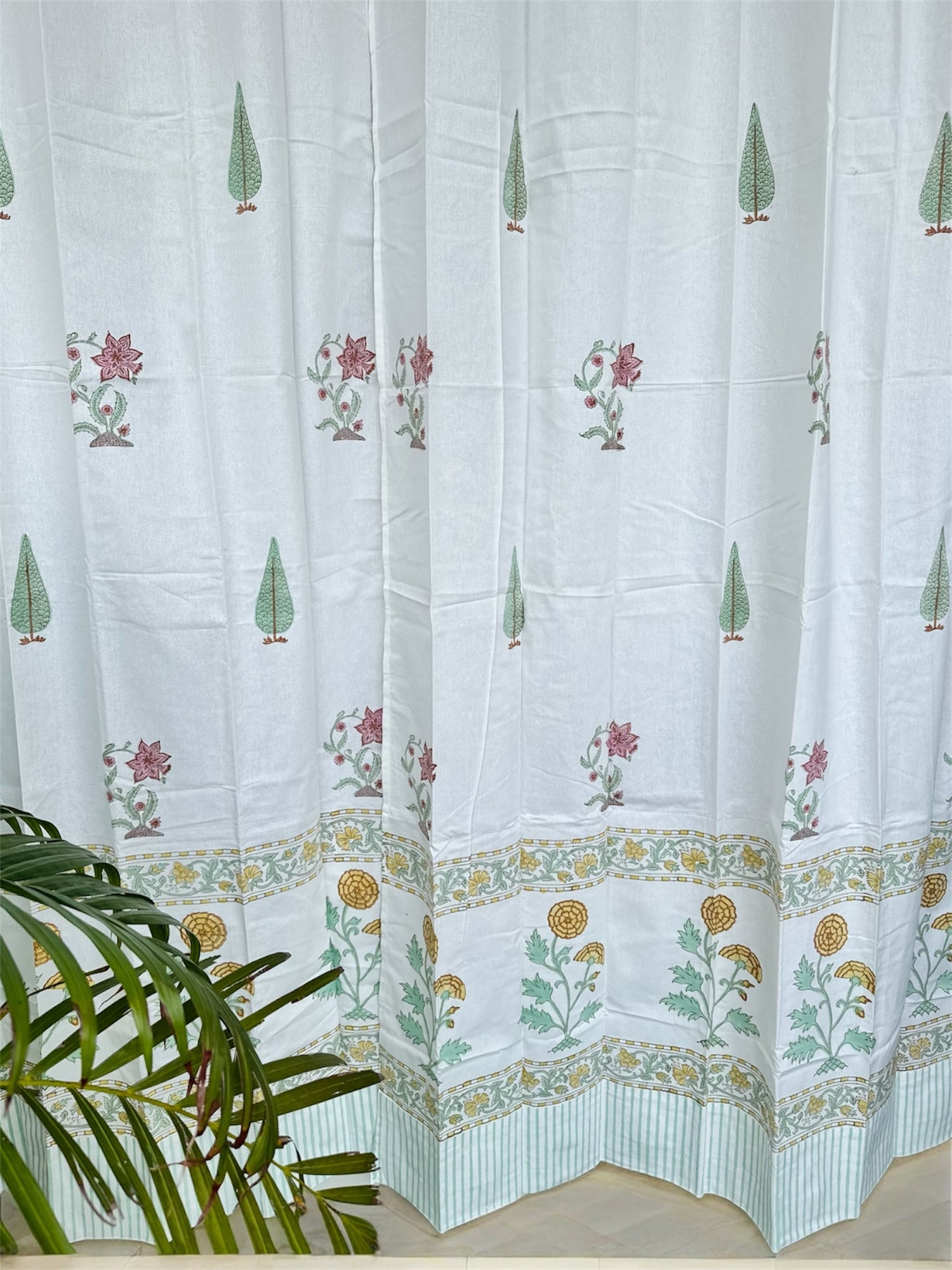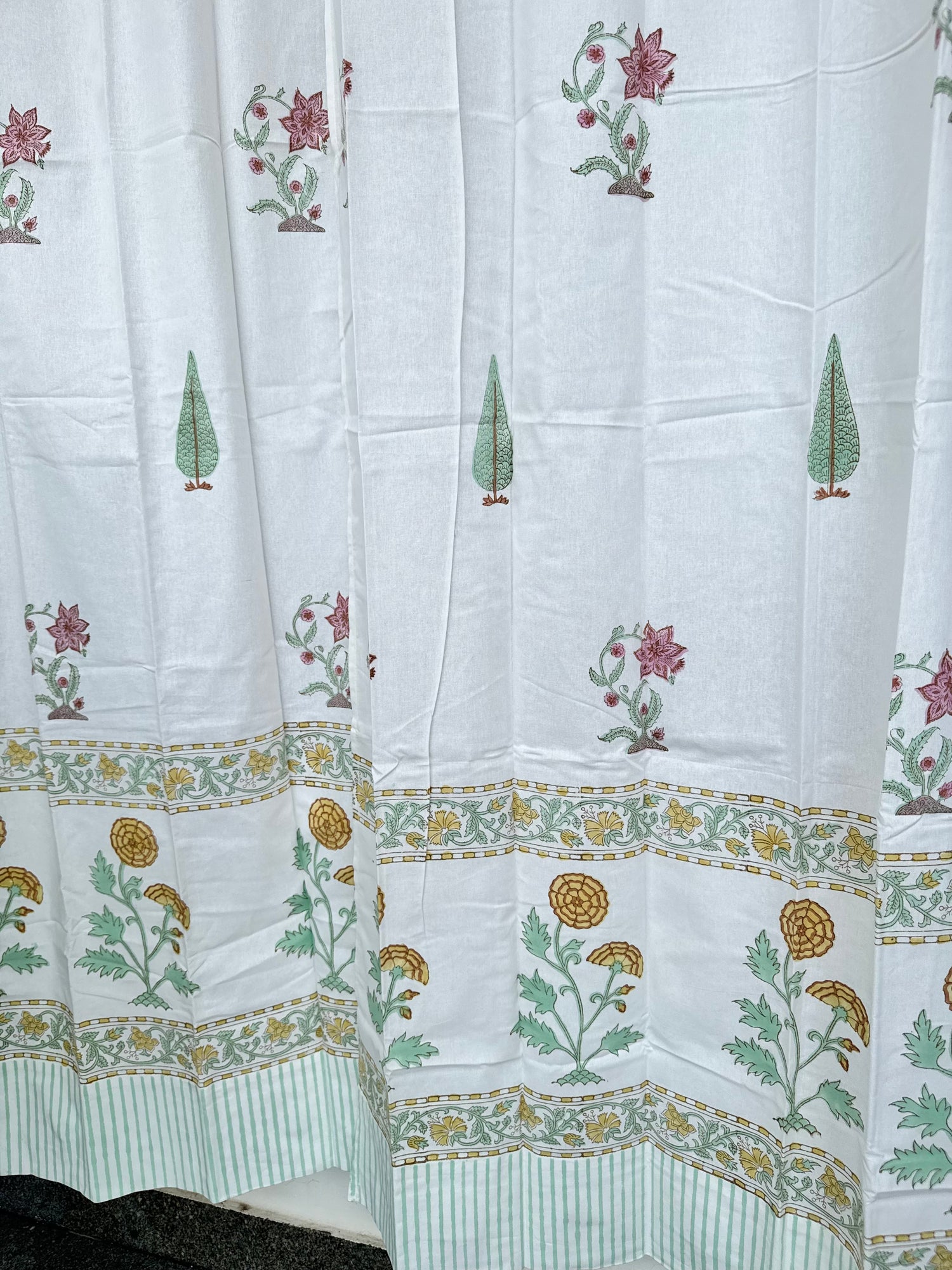 Elegant Floral Blockprint Cotton Curtain - 7ft long is backordered and will ship as soon as it is back in stock.