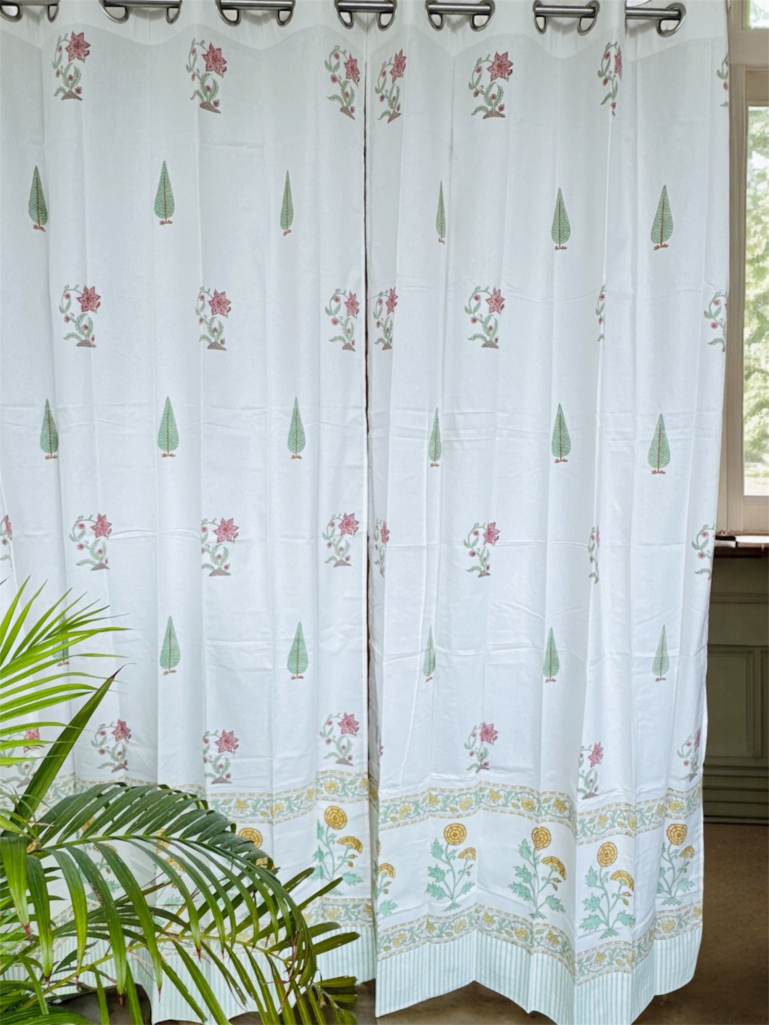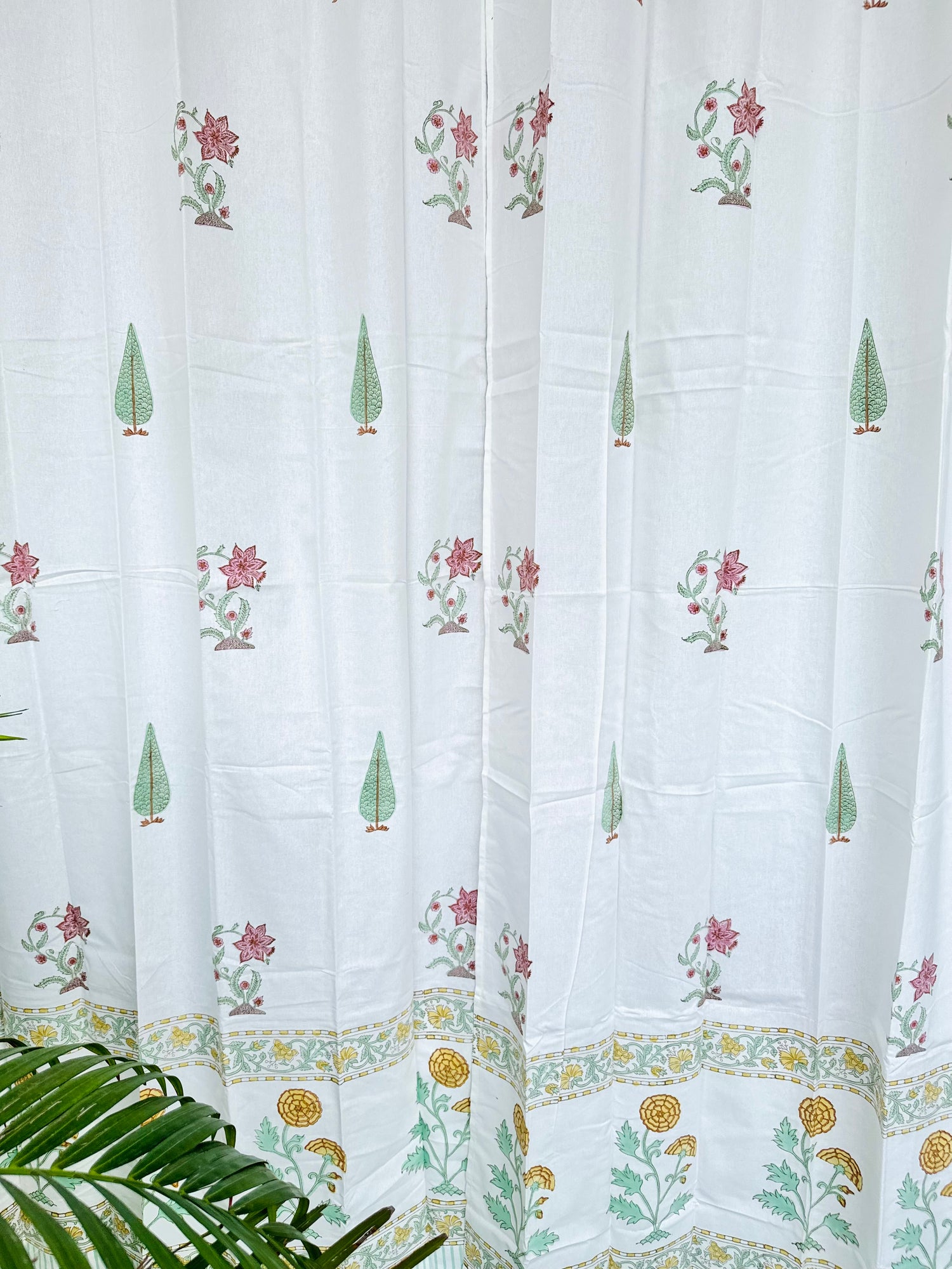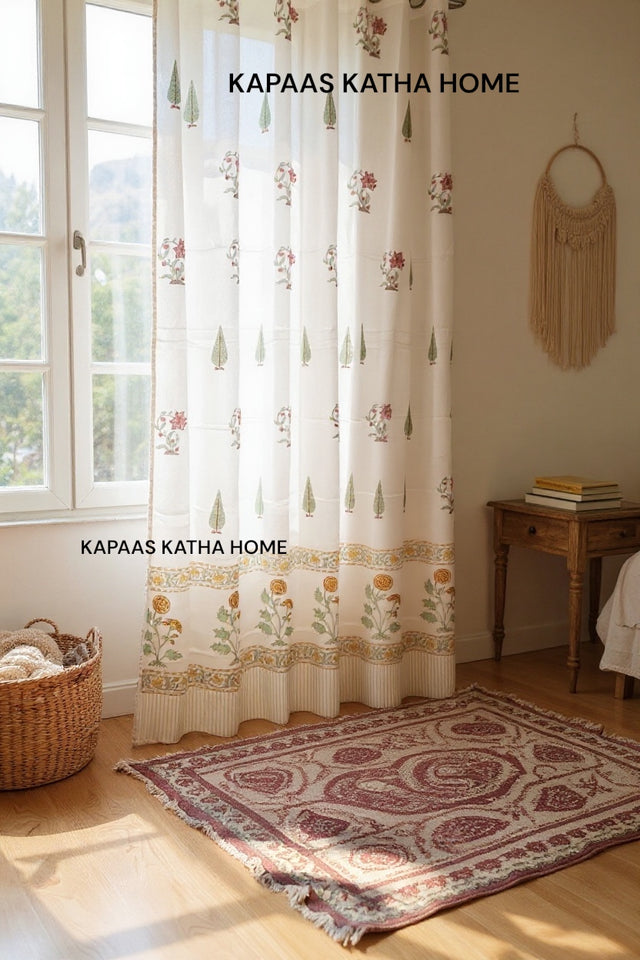 Elegant Floral Blockprint Cotton Curtain