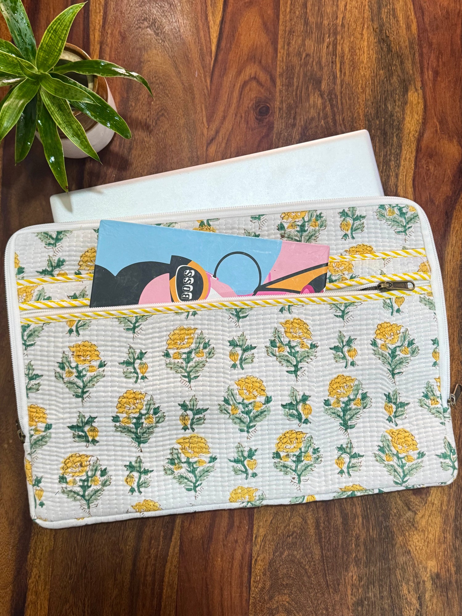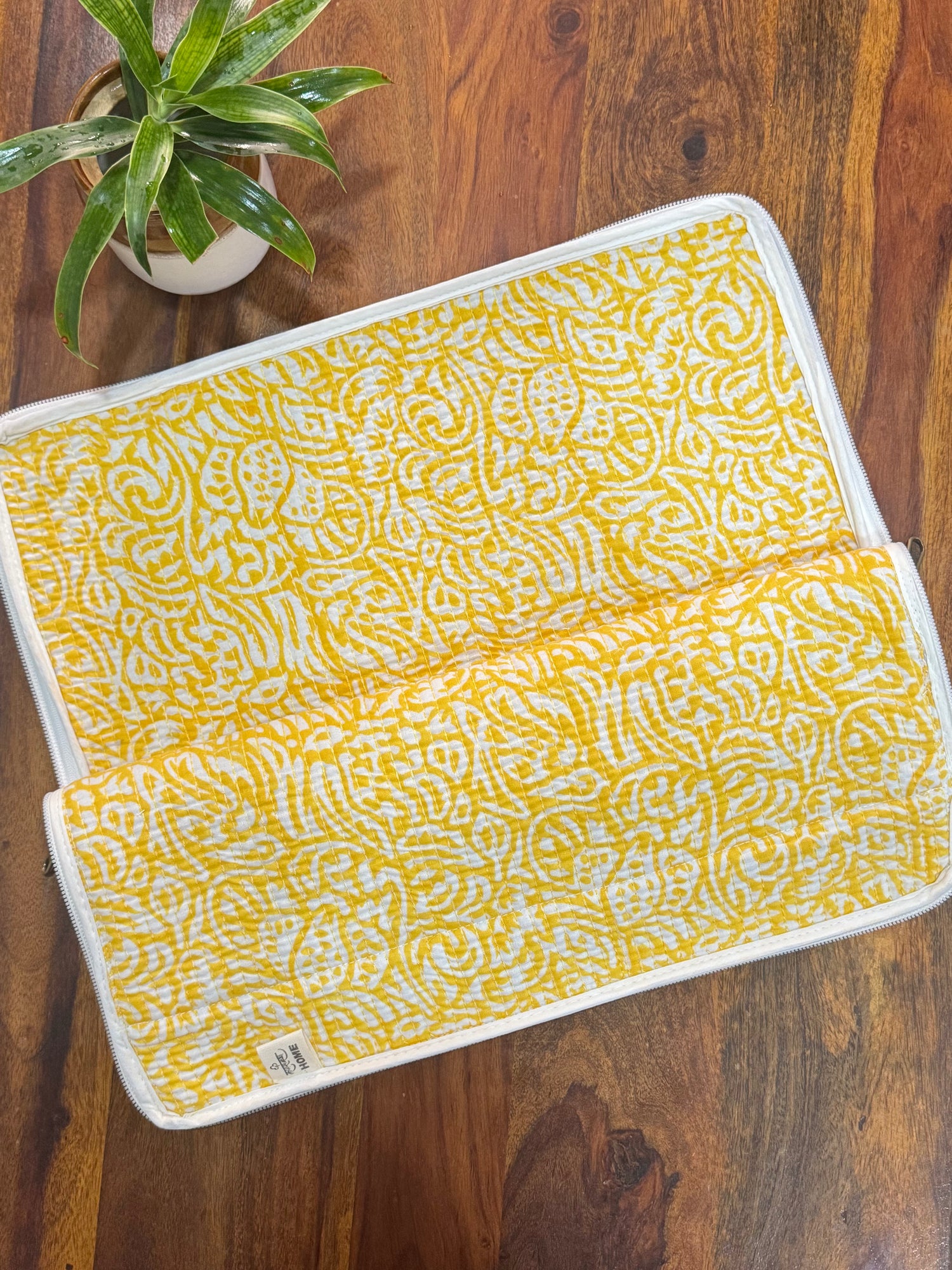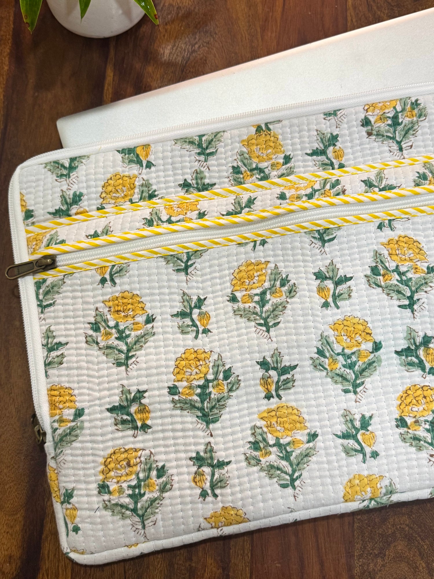 Designed for everyday work and travel needs, this quilted cotton laptop sleeve offers reliable protection in a lightweight format. The cotton quilting provides cushioning against minor bumps, and the breathable fabric helps prevent heat buildup.