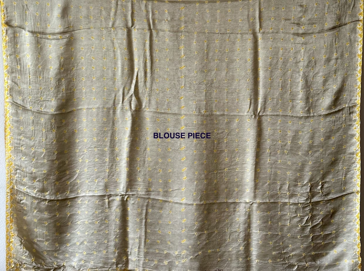 Elegant Grey Mustard Pure Gajji Silk Bandhani Saree