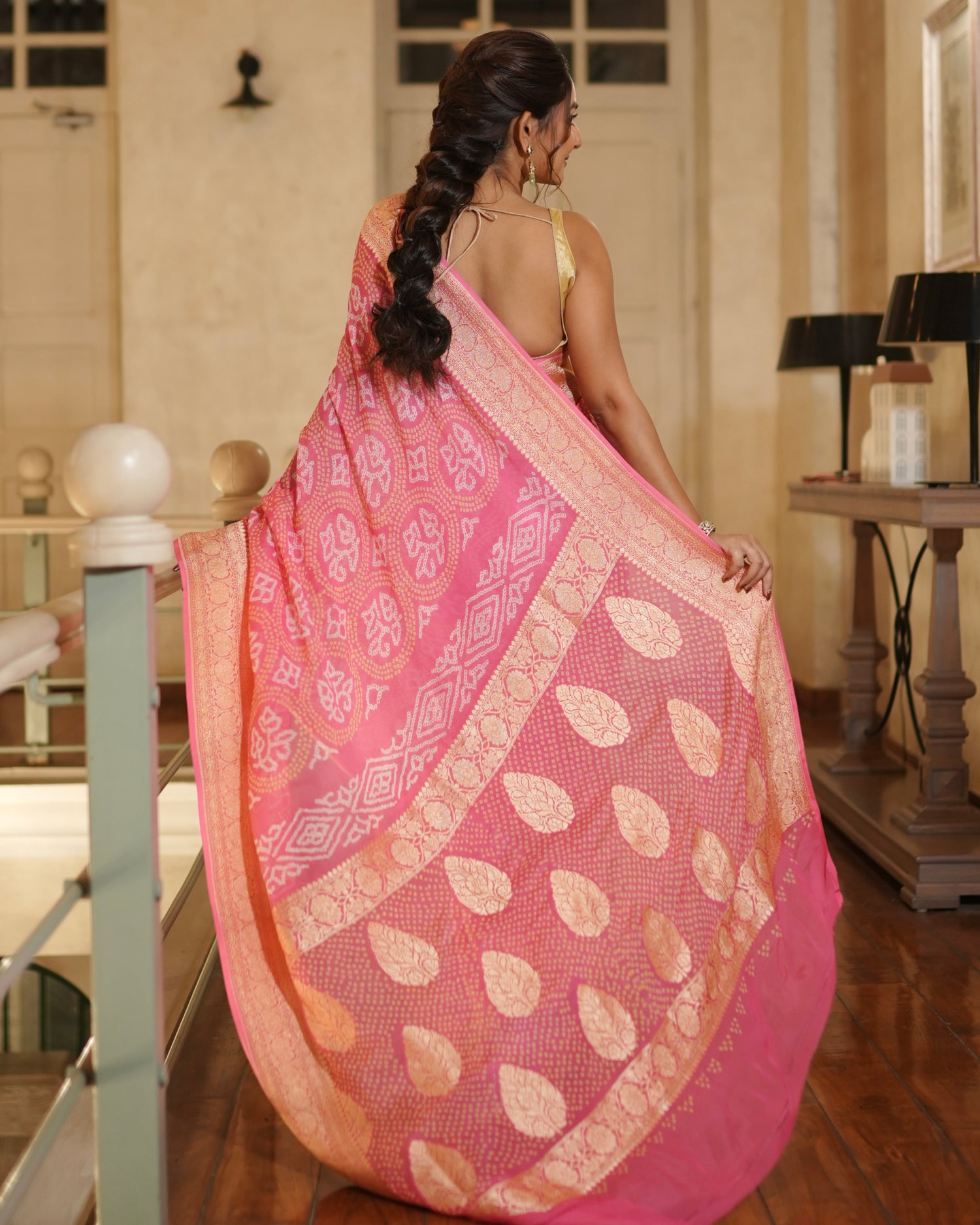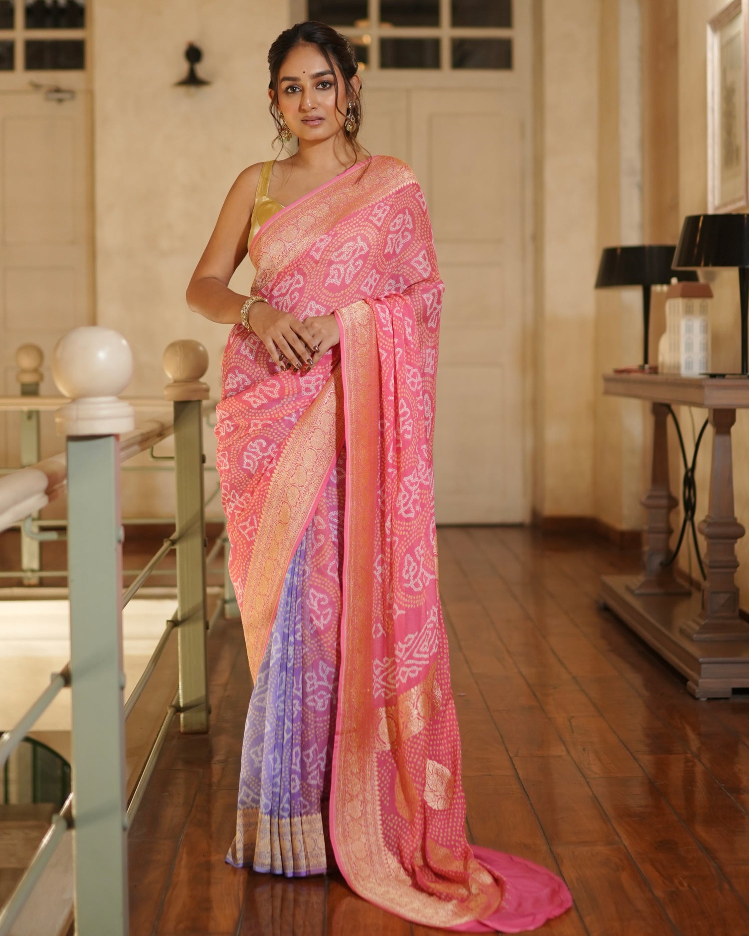 Elegant Pink & Lavender Pure Banarasi Georgette Bandhani Saree